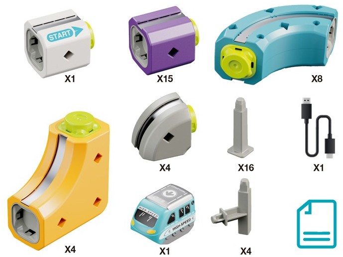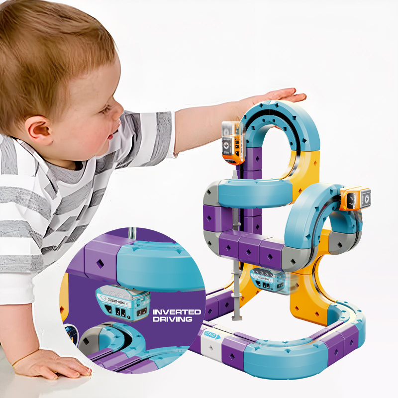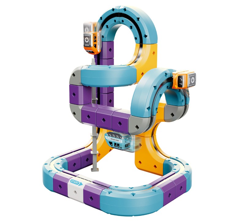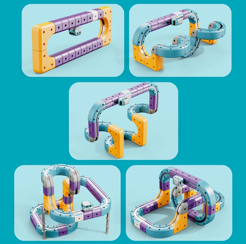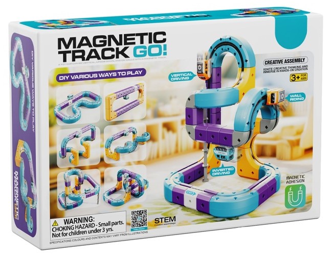 Prezentowany zestaw konstrukcyjny typu STEM pozwala na samodzielne budowanie torów, które wykorzystują przyciąganie magnetyczne, umożliwiając pociągom jazdę nawet w odwróconej pozycji.