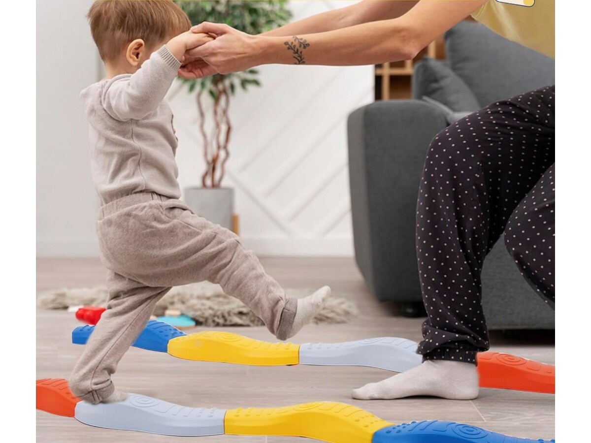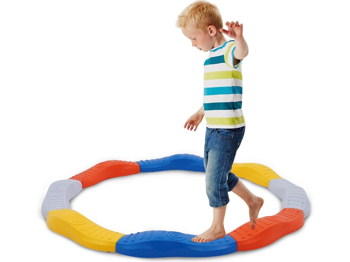 Zabawa i naukaElementy toru posiadają różne kolory, co zachęca do zabawy oraz stymuluje Twoje dziecko. Skacząc i chodząc po kamieniach dzieci uczą się oceniać odległość i wysokość, a także rozwijają koordynację ruchową, równowagę i poczucie przestrzeni.