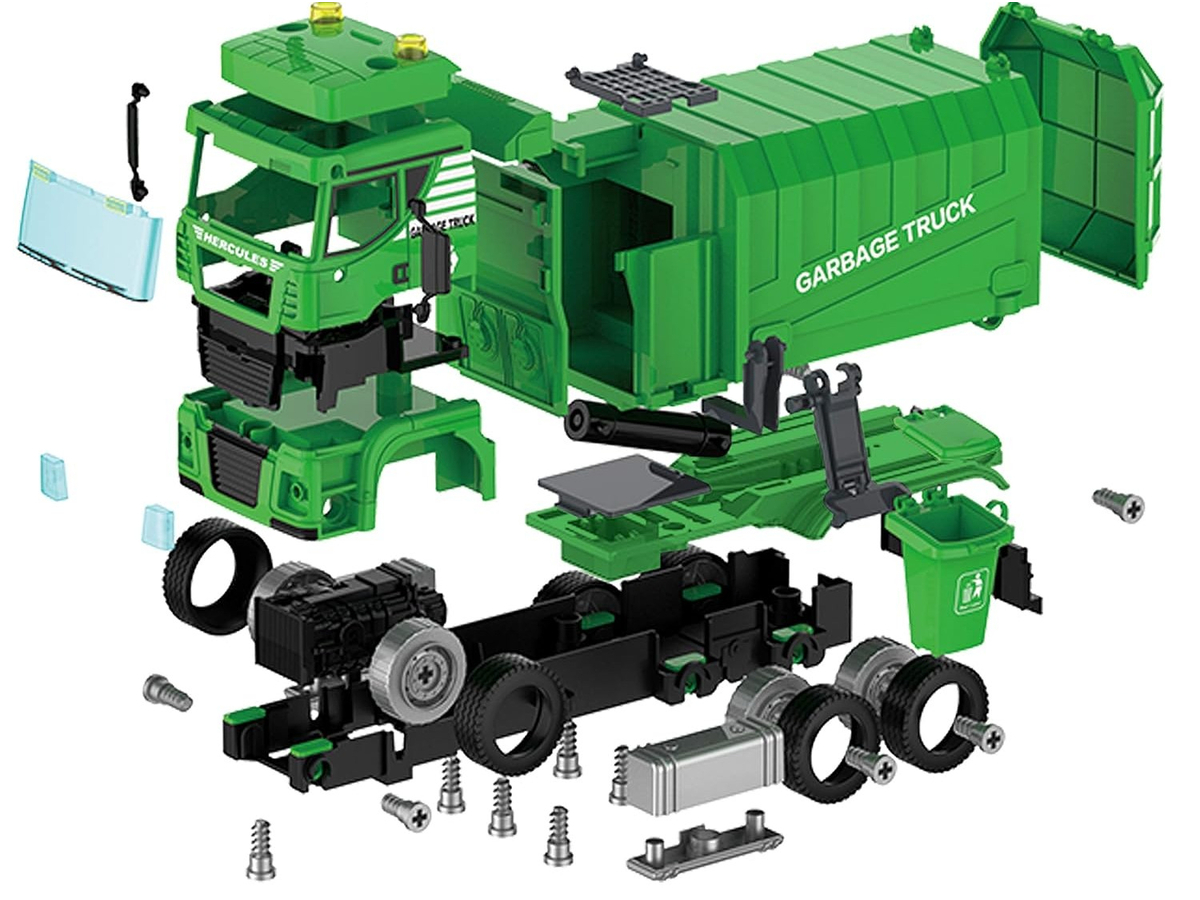 Rozkręcana śmieciarka to idealna zabawka dla małych majsterkowiczów. Zestaw ten rozwija kreatywność, logiczne myślenie i zdolności manualne. W skład zestawu wchodzi aż 112 elementów, m.in. elementy podwozia, kokpitu, koła, śruby itd.