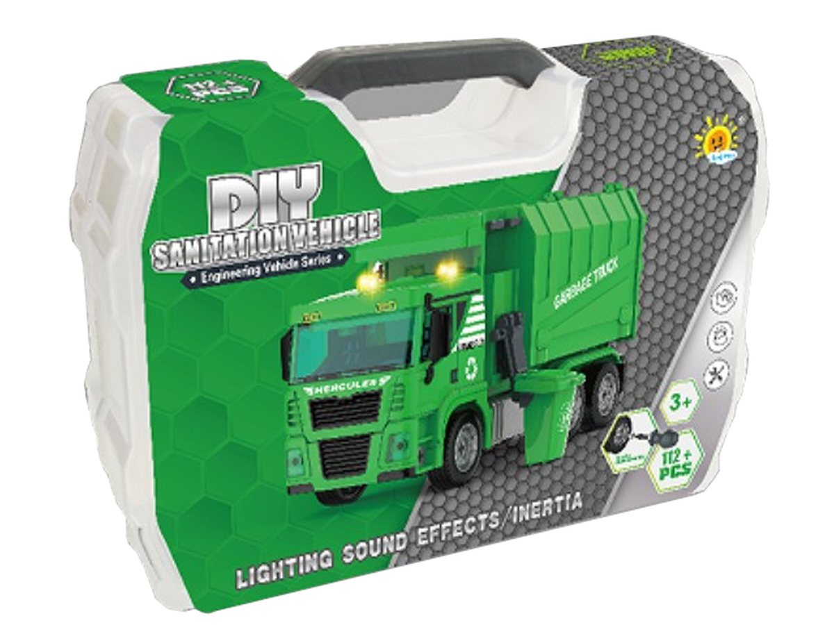 Ciężarówka Auto Samochód ŚMIECIARKA Do Rozkręcania W Walizce + Kosz Na Śmieci