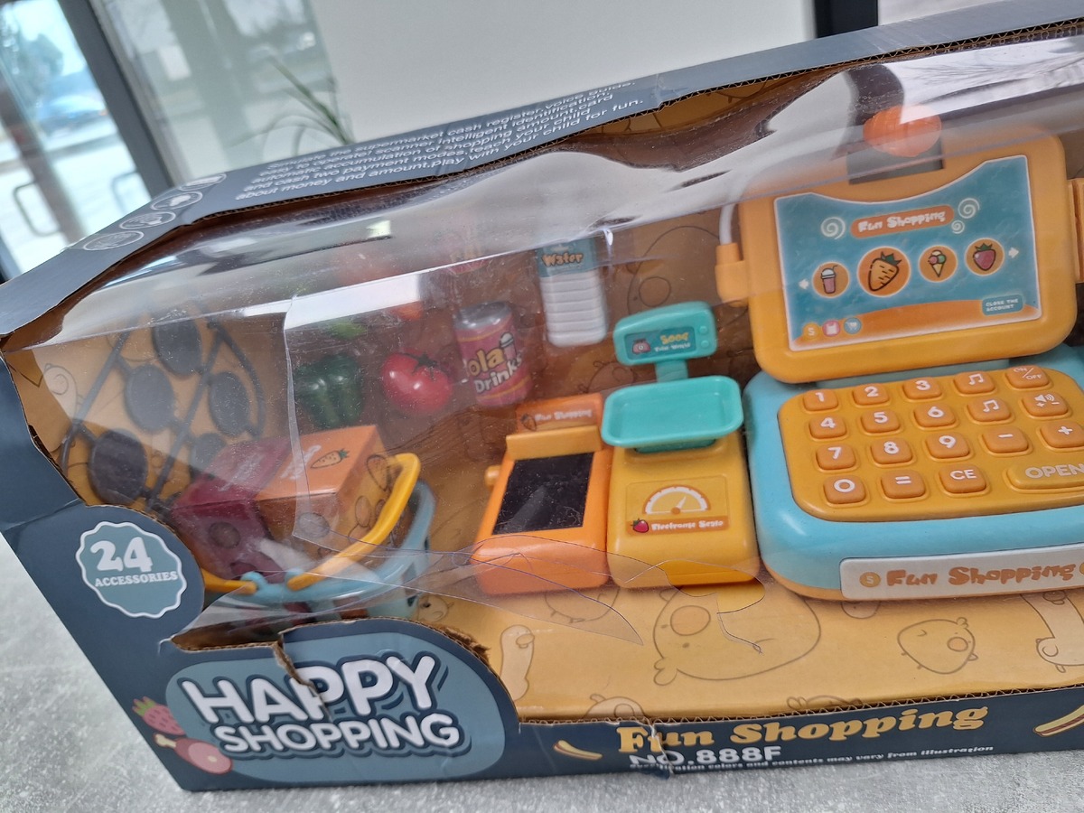 Kasa posiada działający mikrofon oraz wbudowany kalkulator (tylko dodawanie oraz odejmowanie). Ruchoma taśma pozwoli sprawnie przesunąć produkty.