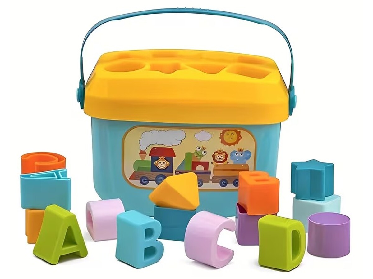 Netto: 23,58 PLNEdukacyjny Sorter Z Klockami Układanka Wiaderko Literki Klocki