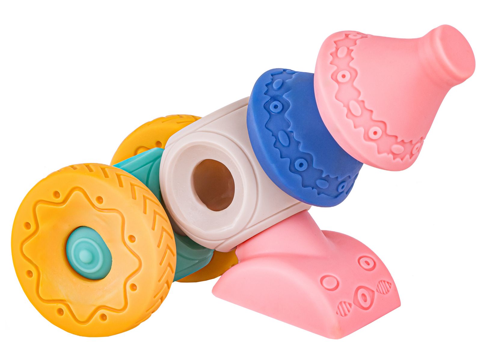 Bezpieczna zabawka dla niemowląt od 6 miesiąca życia wykonana jest z wysokiej jakości materiałów oraz trwałego silikonu.