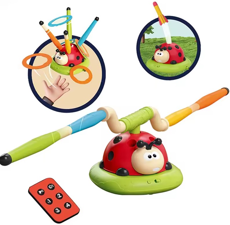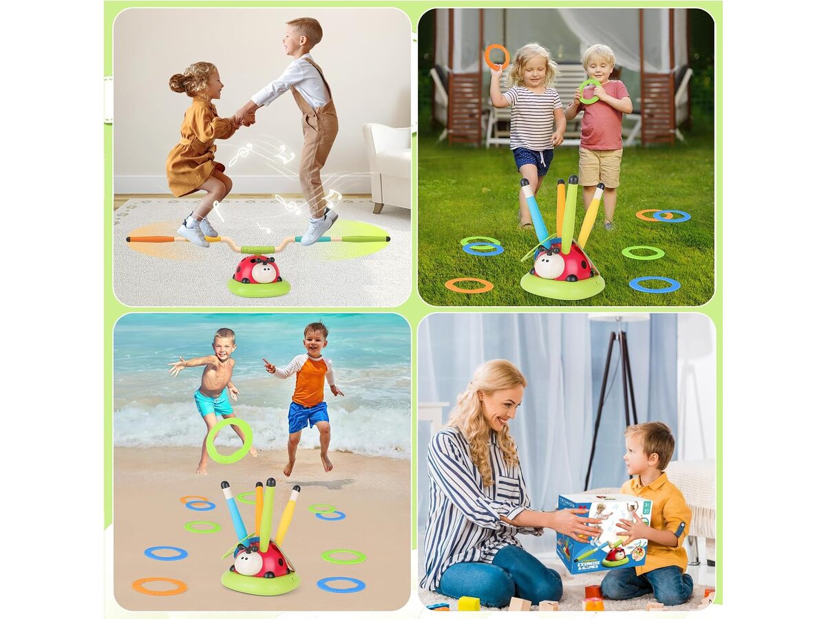 Gra Zręcznościowa 3w1 BIEDRONKA Wyrzutnia Rakiet Skakanka Rzut Do Celu Rzutki Skaczące Ramiona Interaktywna Zabawka Dla Dzieci