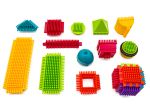 - Kolorowe klocki - prostokątne, kwadratowe, trójkątne, koła zwykłe oraz kręcące się oraz zakończenia typu "daszek",