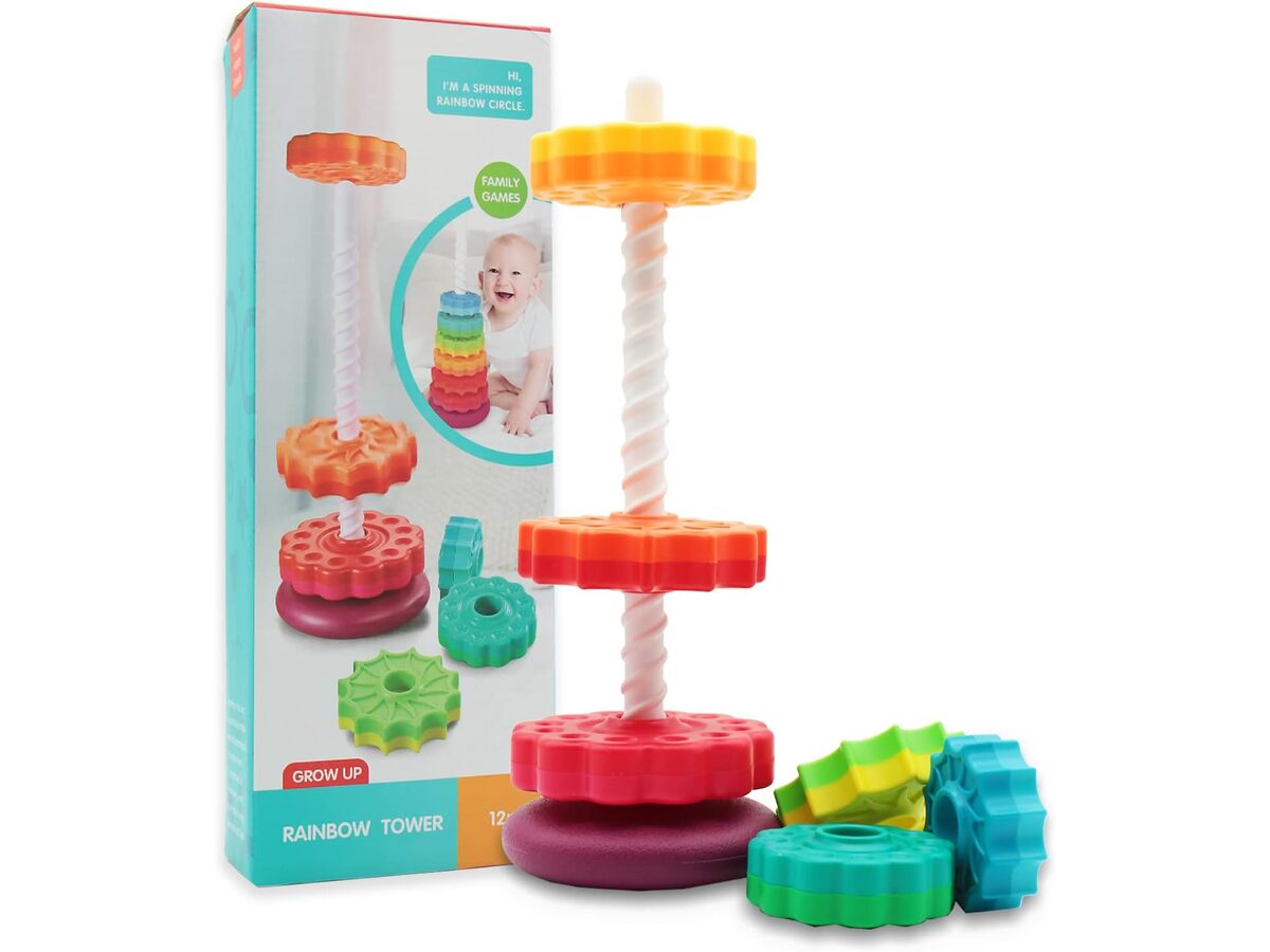 Netto: 40,57 PLNKolorowa Piramida Sensoryczna Zakręcona Wieża Edukacyjna Krążki Do Układania