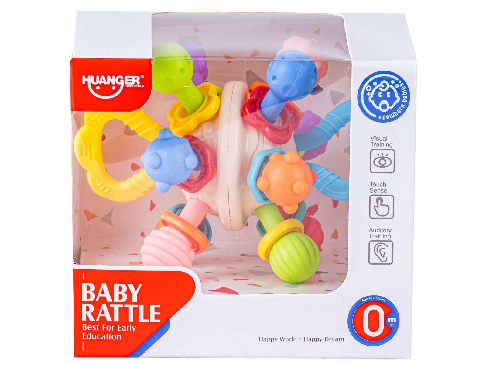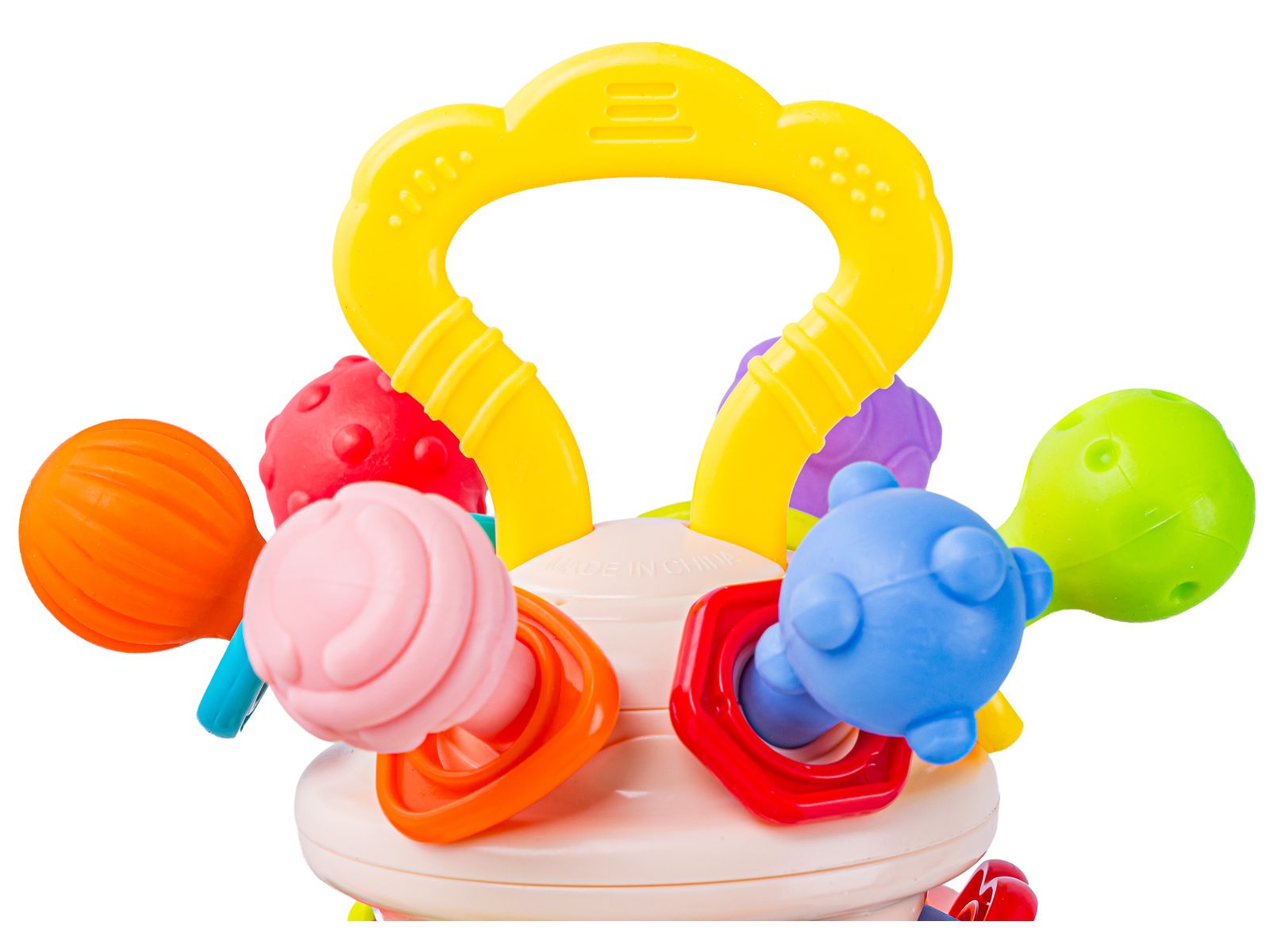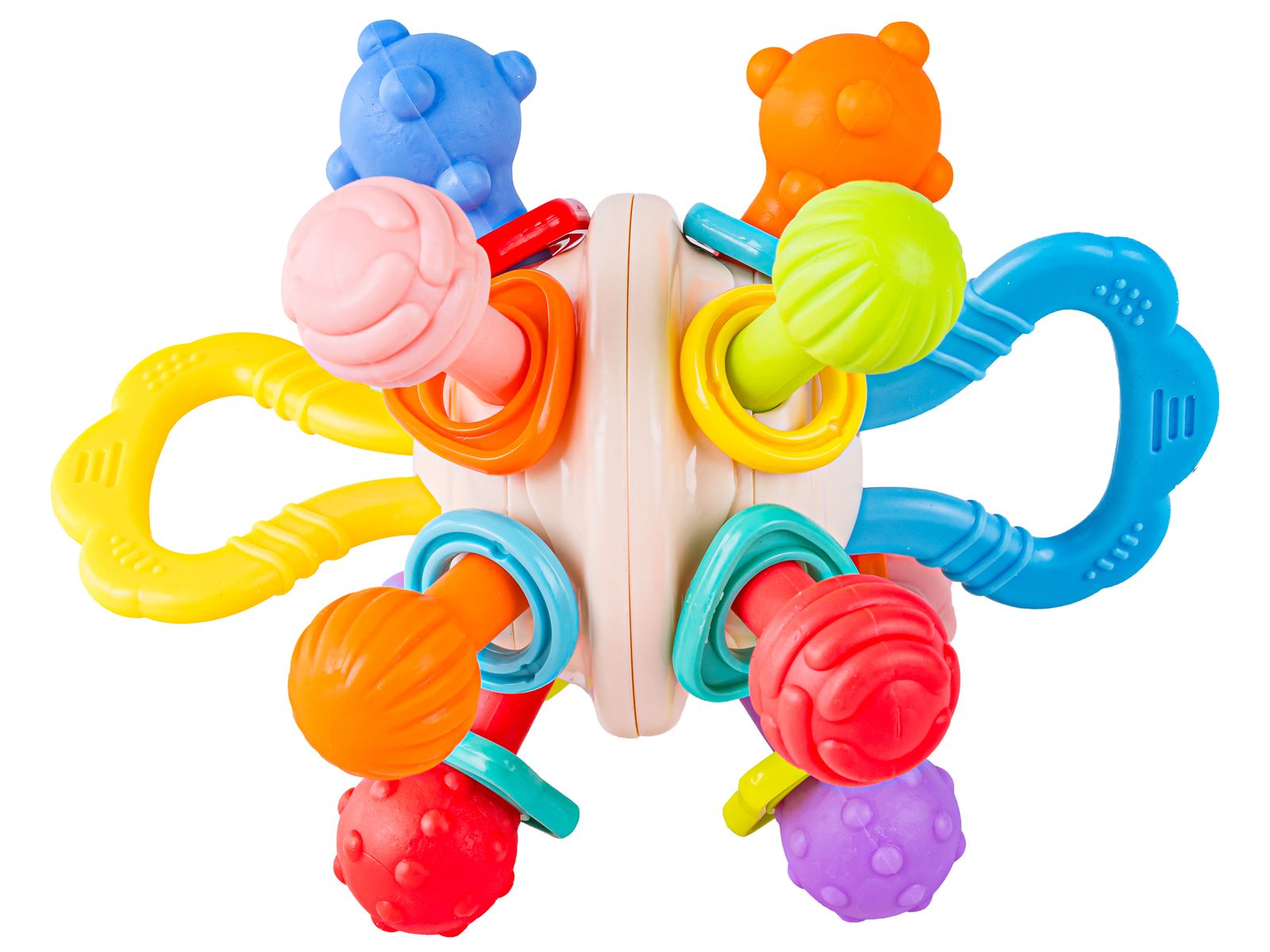 Zabawka została zaprojektowana z myślą o małych dłoniach niemowląt. Dzięki temu jest łatwa do chwytania i bezpieczna dla dzieci. Różnorodność kształtów i kolorów przyciąga uwagę oraz stymuluje rozwój motoryczny i sensoryczny.