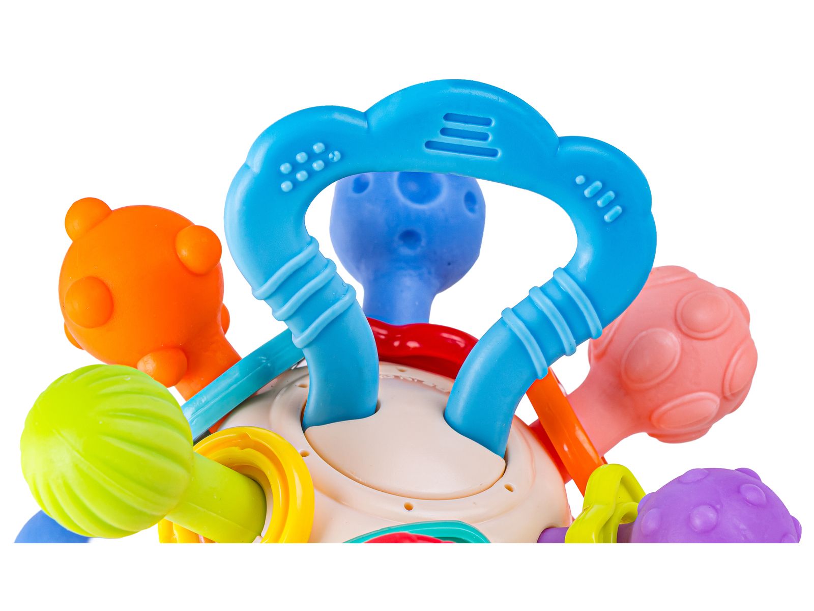 Okrągły kształt i miękki materiał gryzaka zapewniają ulgę podczas ząbkowania i łagodzą dyskomfort. To fantastyczna zabawka edukacyjna o szerokim zastosowaniu. Dzięki połączeniu różnych kształtów, wzorów i kolorów jest to trafiony wybór, który zajmie dziecko na długi czas.