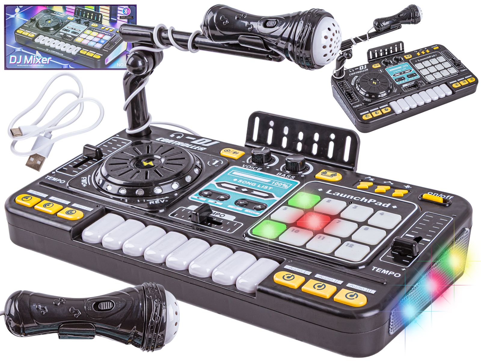 Konsola Dj dla dzieci Organki Zabawka muzyczna Elektroniczny Mikser Kontroler Mikrofon Konsoleta Światło LED