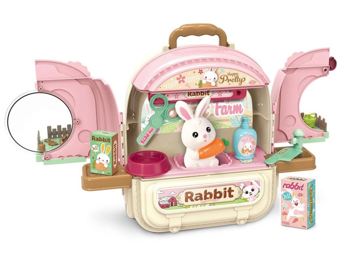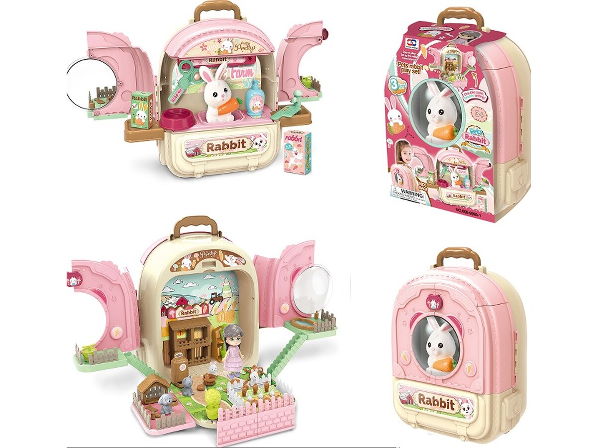 Netto: 64,23 PLNKrólik w Plecaku Zabawka 3w1 Mini Farma Ogródek Plecak Domek Dla Lalek