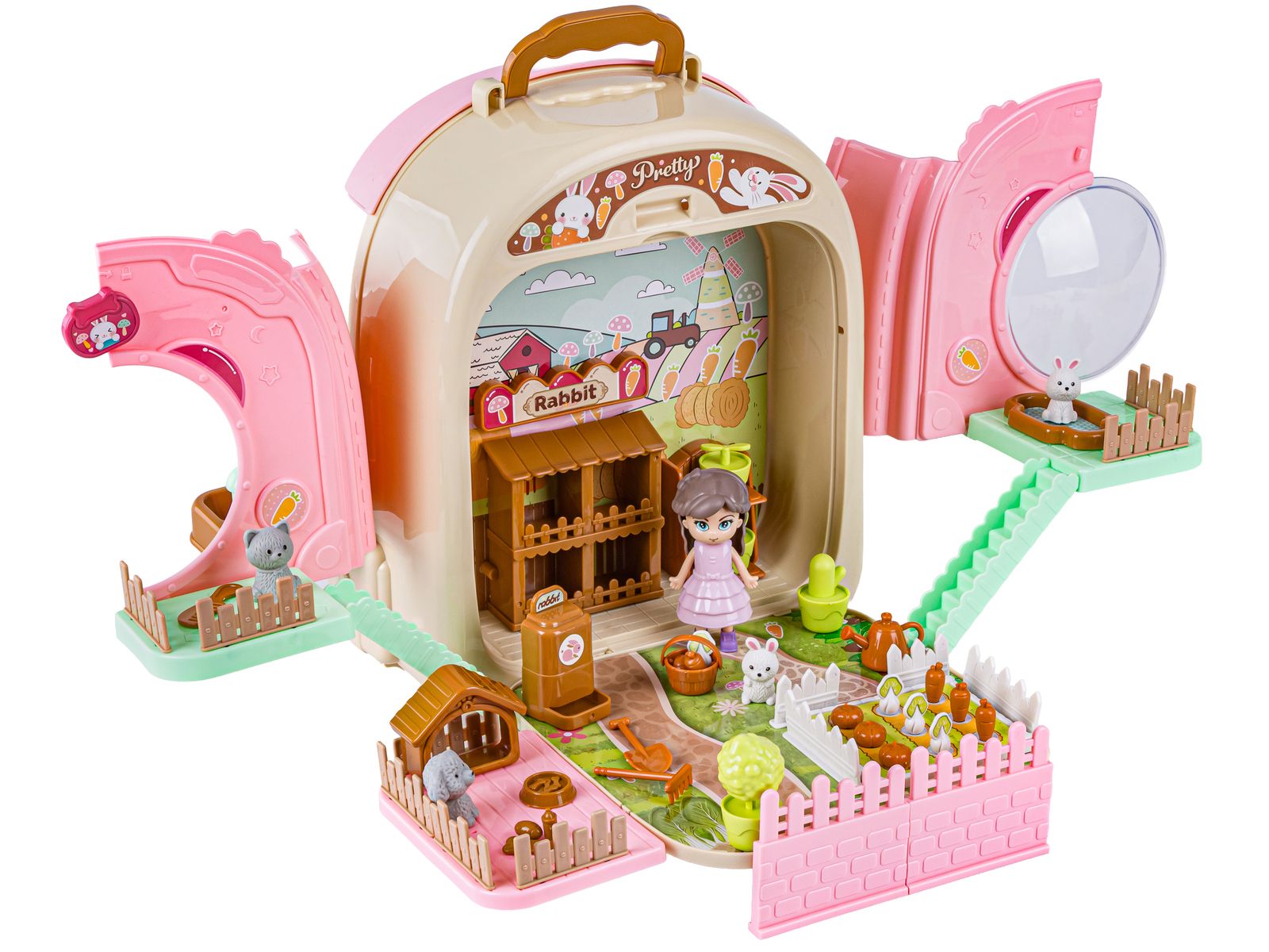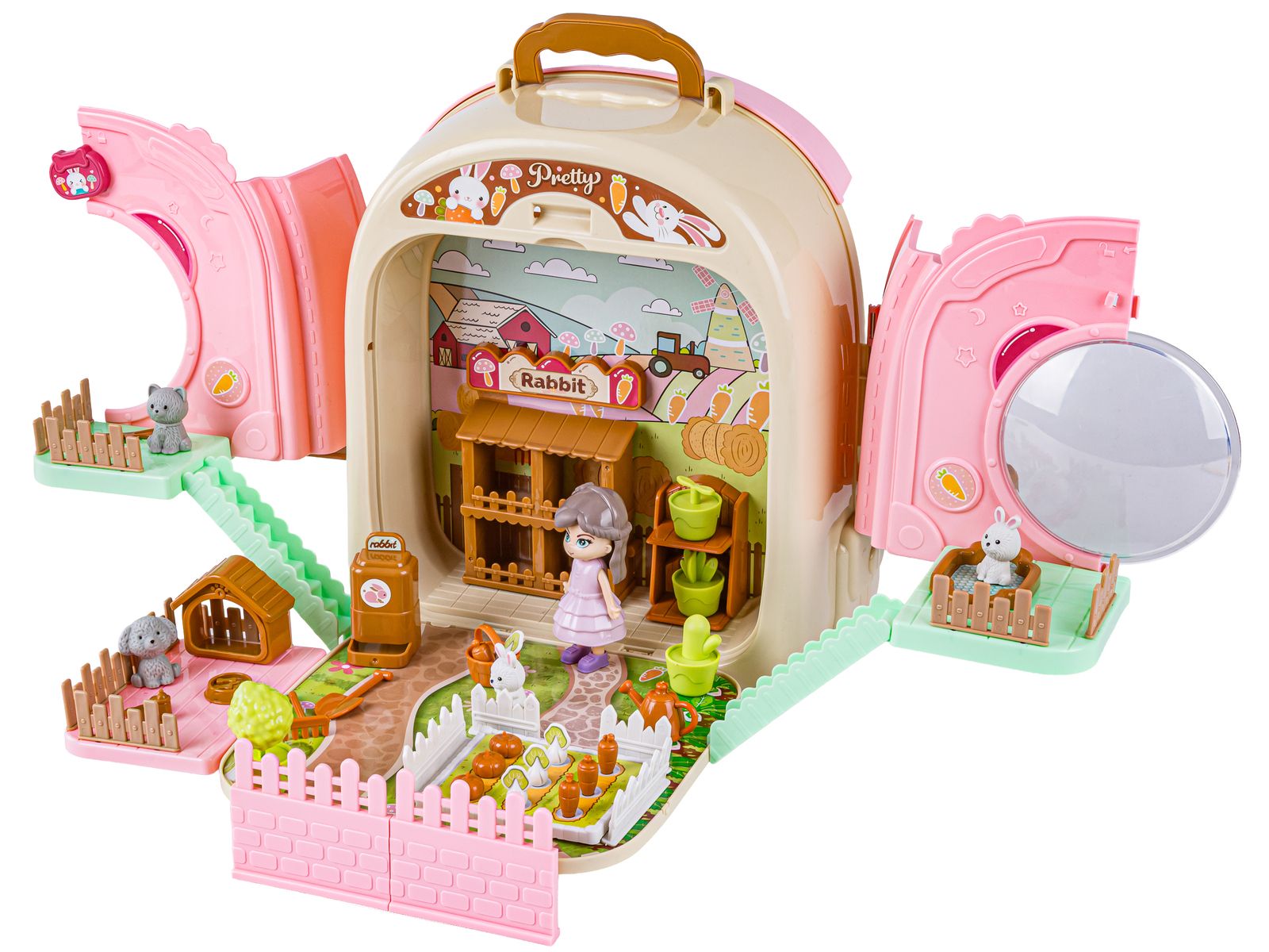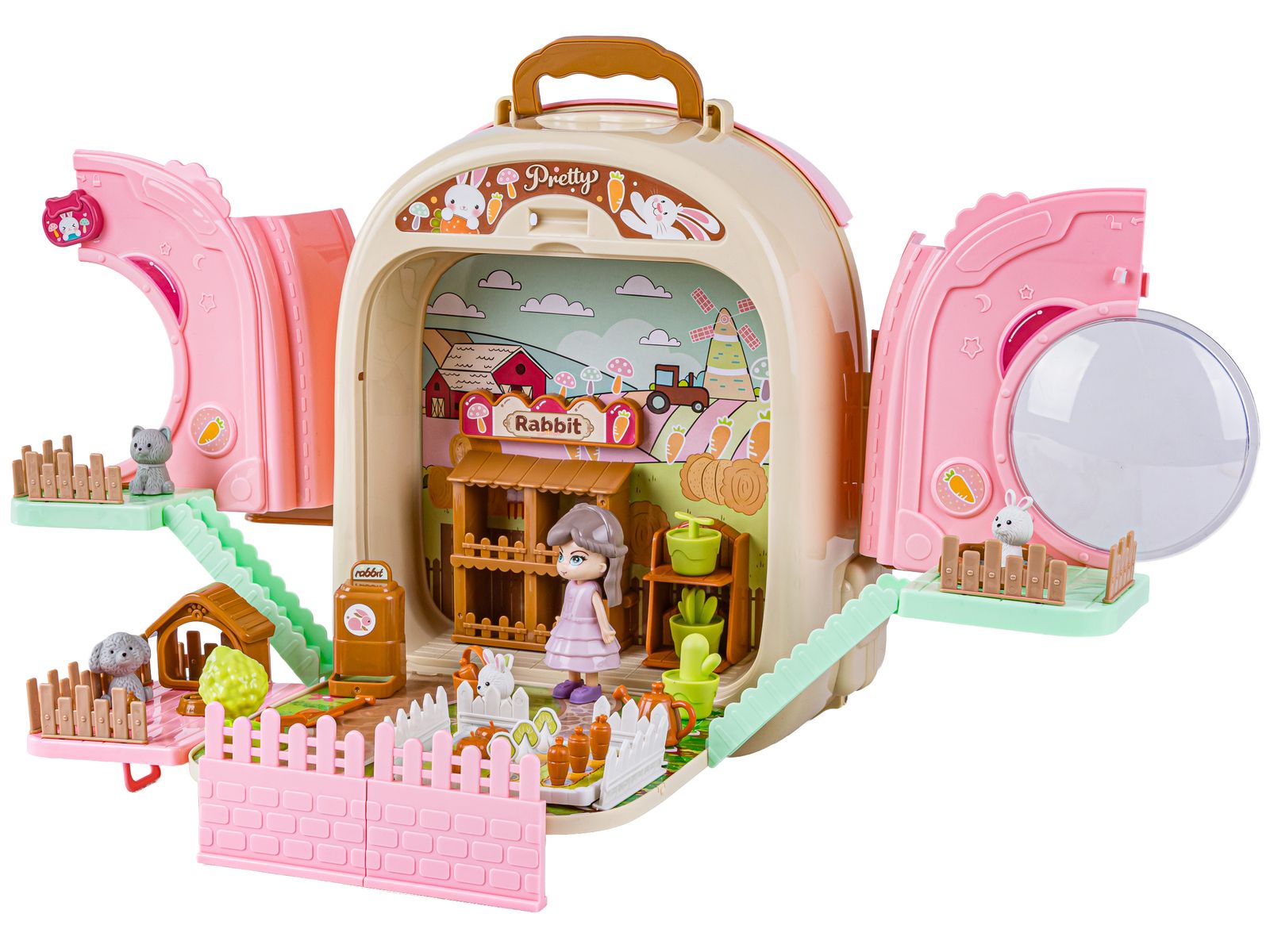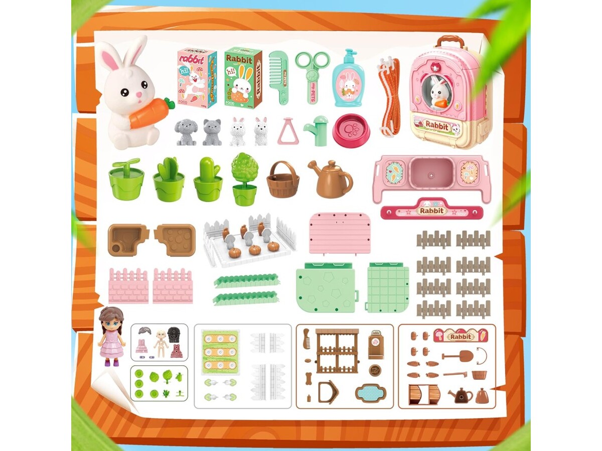 Królik w Plecaku Zabawka 3w1 Mini Farma Ogródek Plecak Domek Dla Lalek