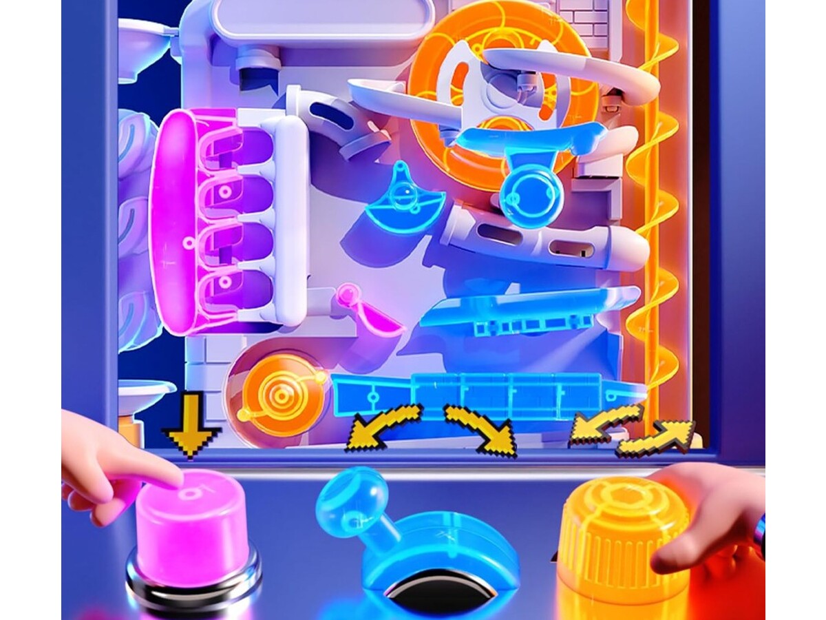 Tor przeszkód to zabawka pełna atrakcji - zaprojektowana w taki sposób aby przeprowadzić kulkę przez cały labirynt aż do mety ale używając specjalnych przycisków! Kuleczki w trakcie "przeprawy" muszą podskakiwać, przeskakiwać, wjeżdżać i zjeżdżać :) To super zabawa!