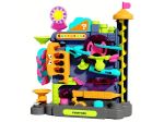 Przekonaj się jak wiele radości da Twojemu maluchowi zabawa tym niezwykłym torem. Kolorowy zjazd z pewnością przykuje uwagę i zachęci do zabawy. Aby pokonać cały tor przeszkód wystarczy zręcznie operować przyciskami i gałkami umieszczonymi na dole planszy.