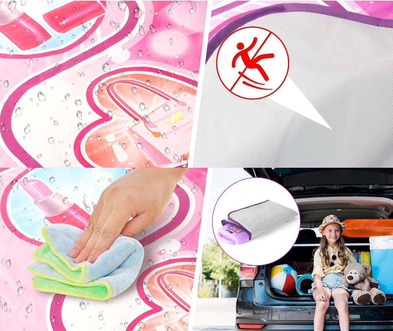 Bezpieczny materiałAntypoślizgowy materiał minimalizuje ryzyko kontuzji podczas zabawy. Dodatkowo materiał jest wodoodporny i bardzo łatwy w czyszczeniu. |