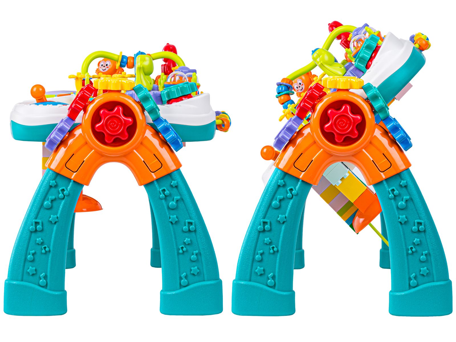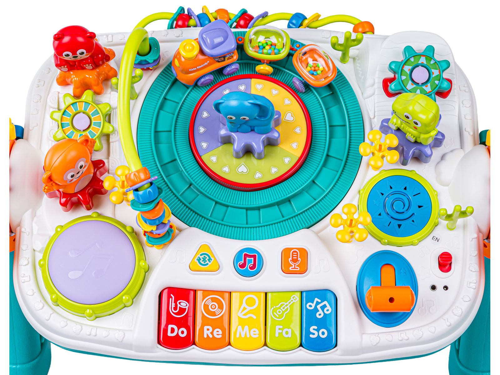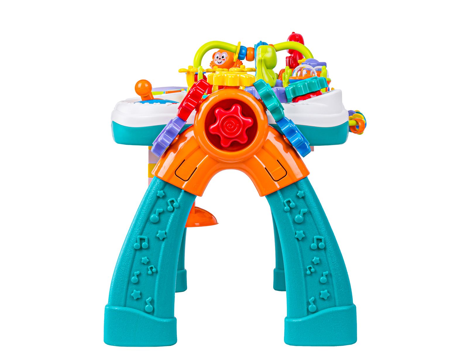 Stolik zawiera muzyczne przyciski oraz pianinko, które może odtwarzać pojedyncze dźwięki lub po zmianie trybu odgłosy instrumentów.
