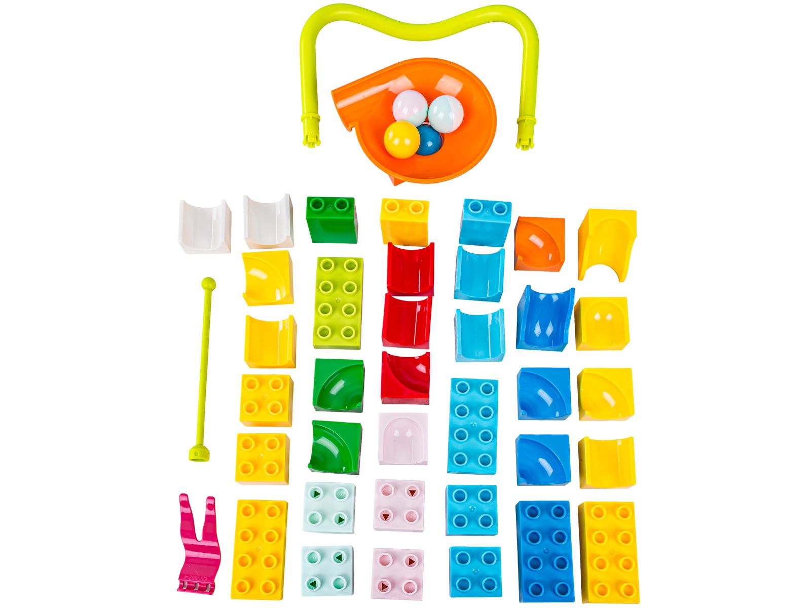 - Panel jest dwustronny, z drugiej strony posiada podkład do budowania toru kulkowego z klocków.
