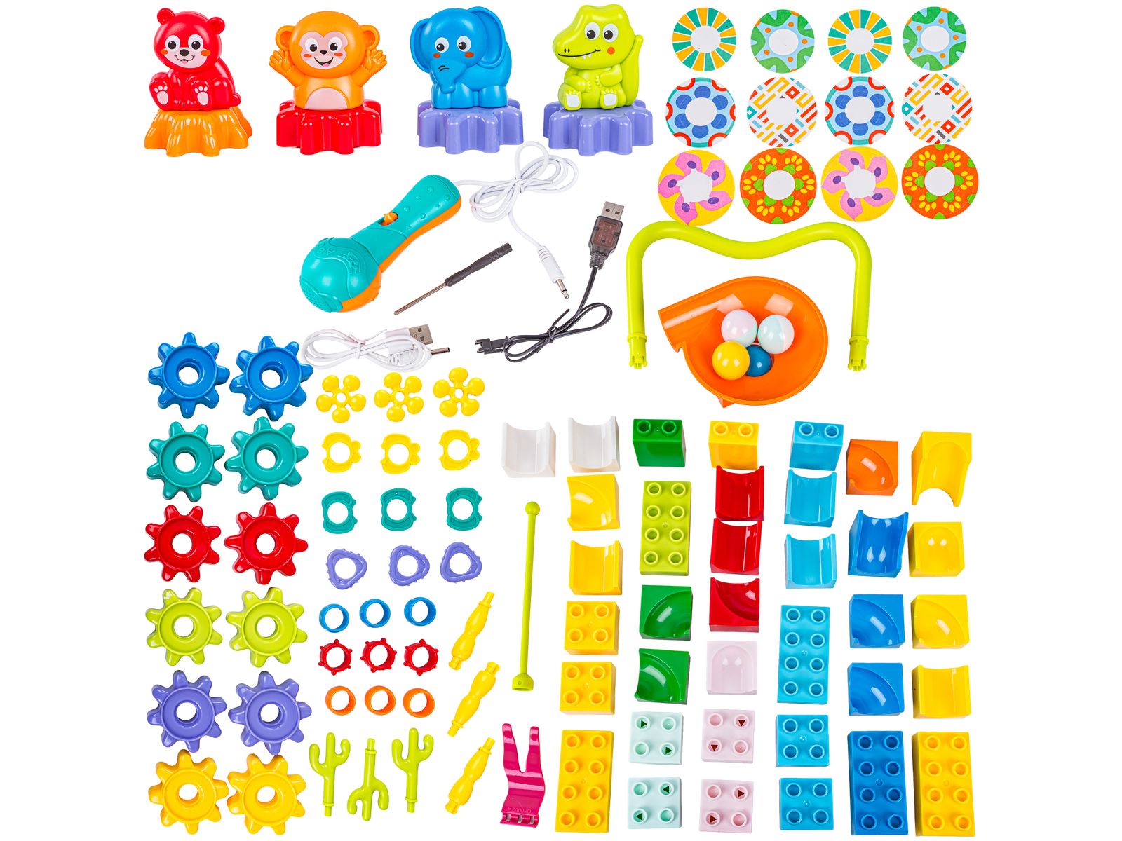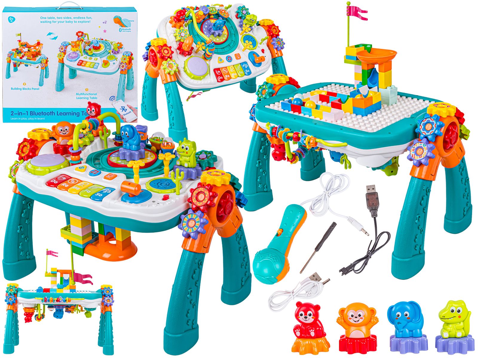 Multifunkcyjny Edukacyjny Stolik 2w1 Pianinko Ciuchcia Mikrofon Klocki Bluetooth Akumulator