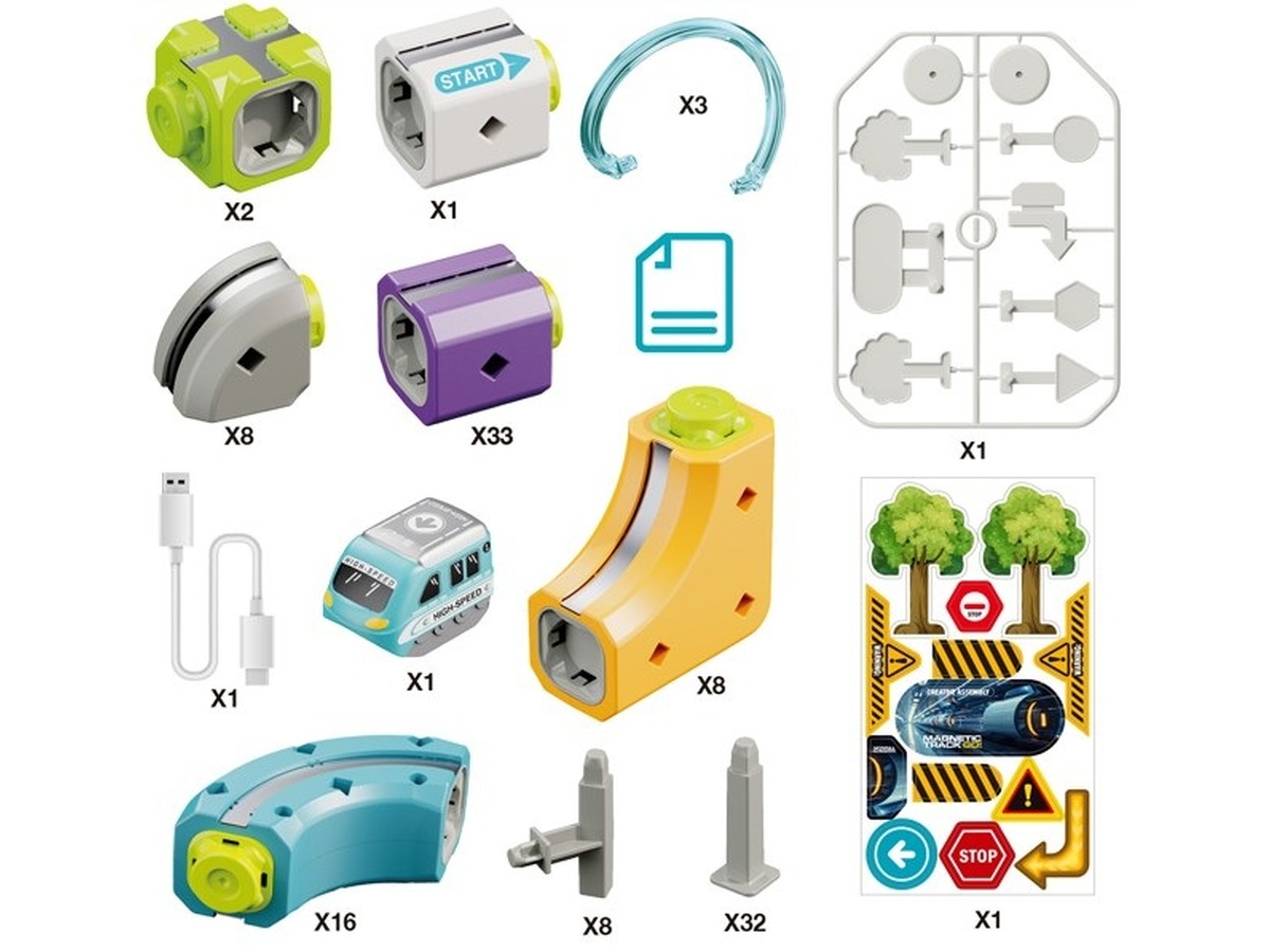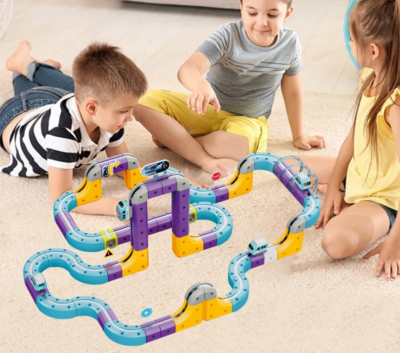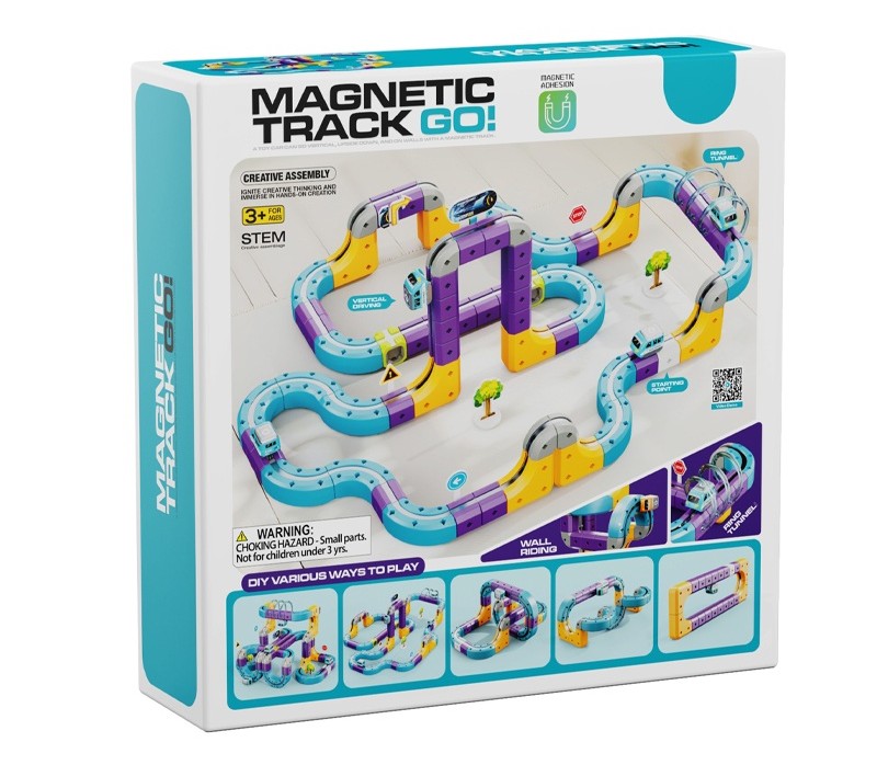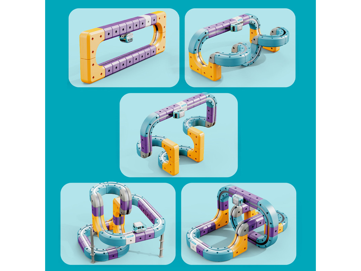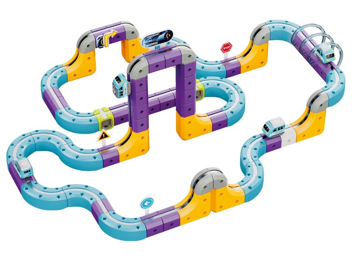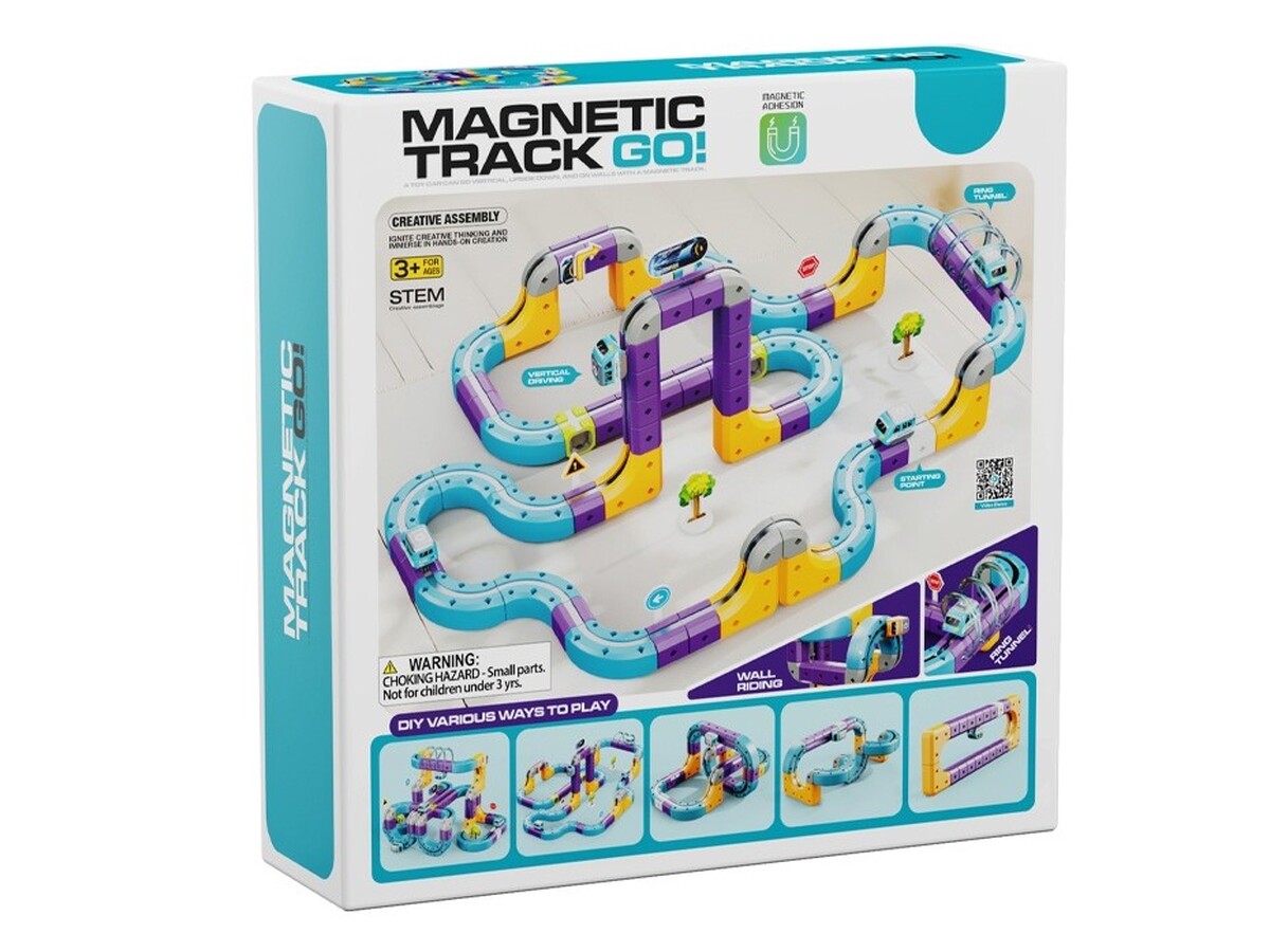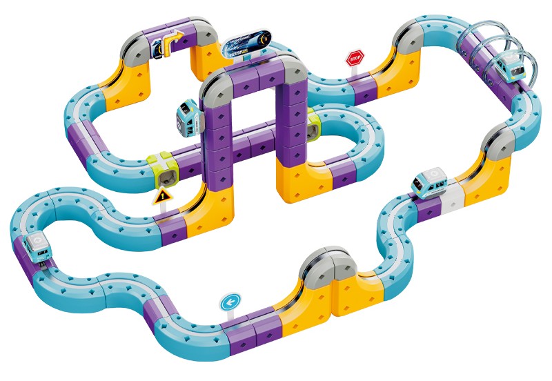 Prezentowany zestaw konstrukcyjny typu STEM pozwala na samodzielne budowanie torów, które wykorzystują przyciąganie magnetyczne, umożliwiając pociągowi jazdę nawet w odwróconej pozycji.