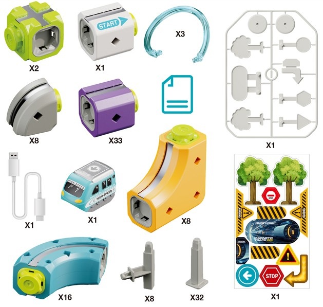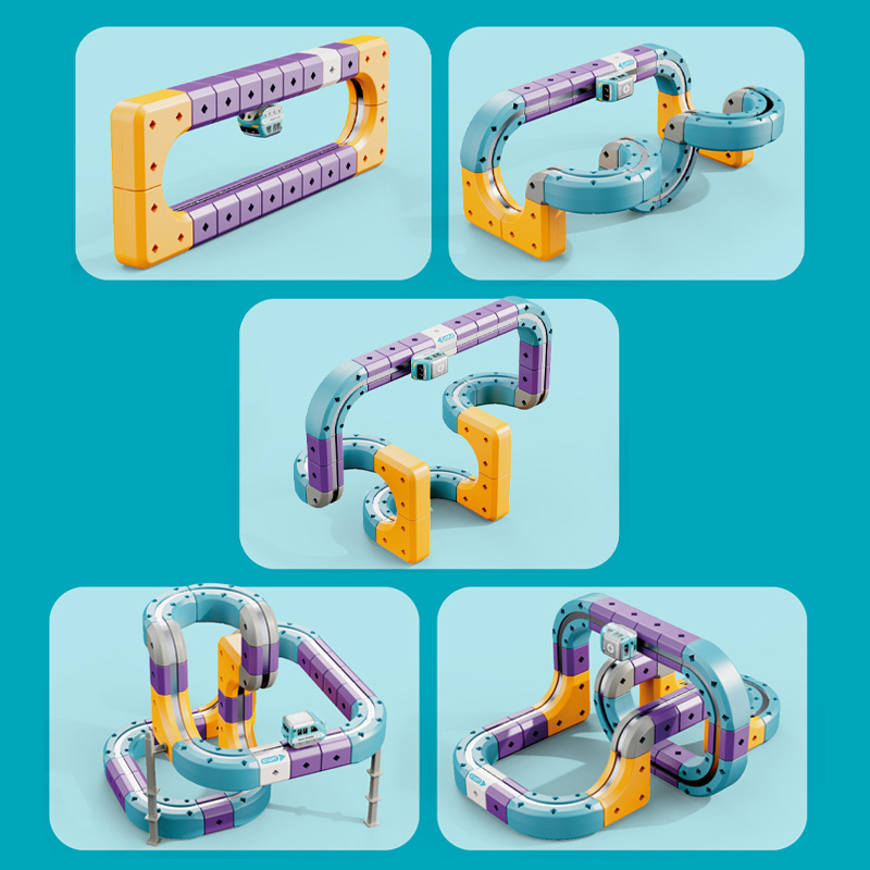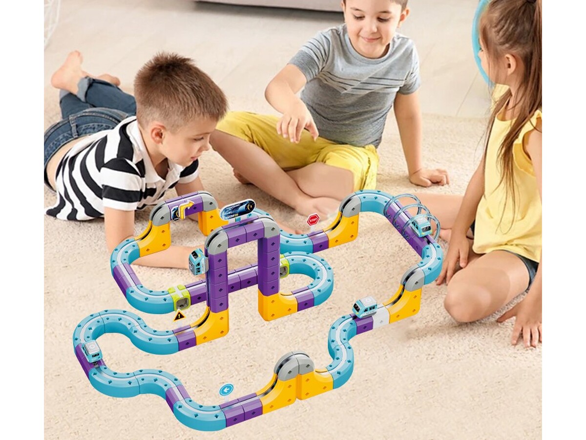 Tor Magnetyczny Zjazd samochodowy Kolejka Zjeżdżalnia Pociąg Klocki Konstrukcyjne 114 el.