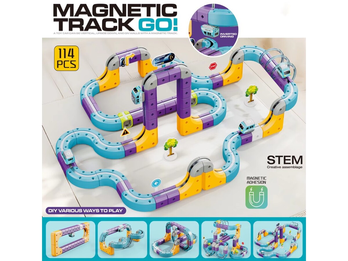 Netto: 145,53 PLNTor Magnetyczny Zjazd samochodowy Kolejka Zjeżdżalnia Pociąg Klocki Konstrukcyjne 114 el.