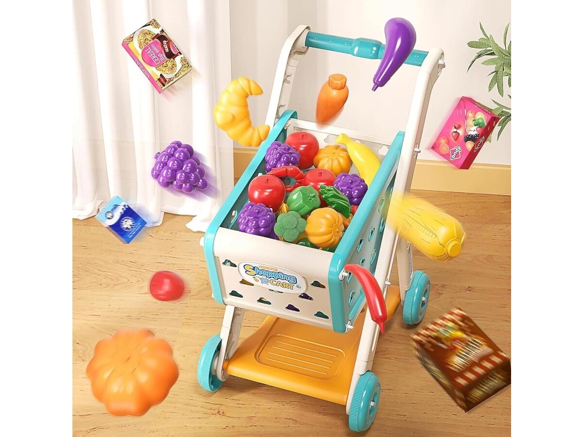 Netto: 56,10 PLNWózek Na Zakupy NIEBIESKI Koszyk Sklepowy + Akcesoria Owoce Warzywa Supermarket