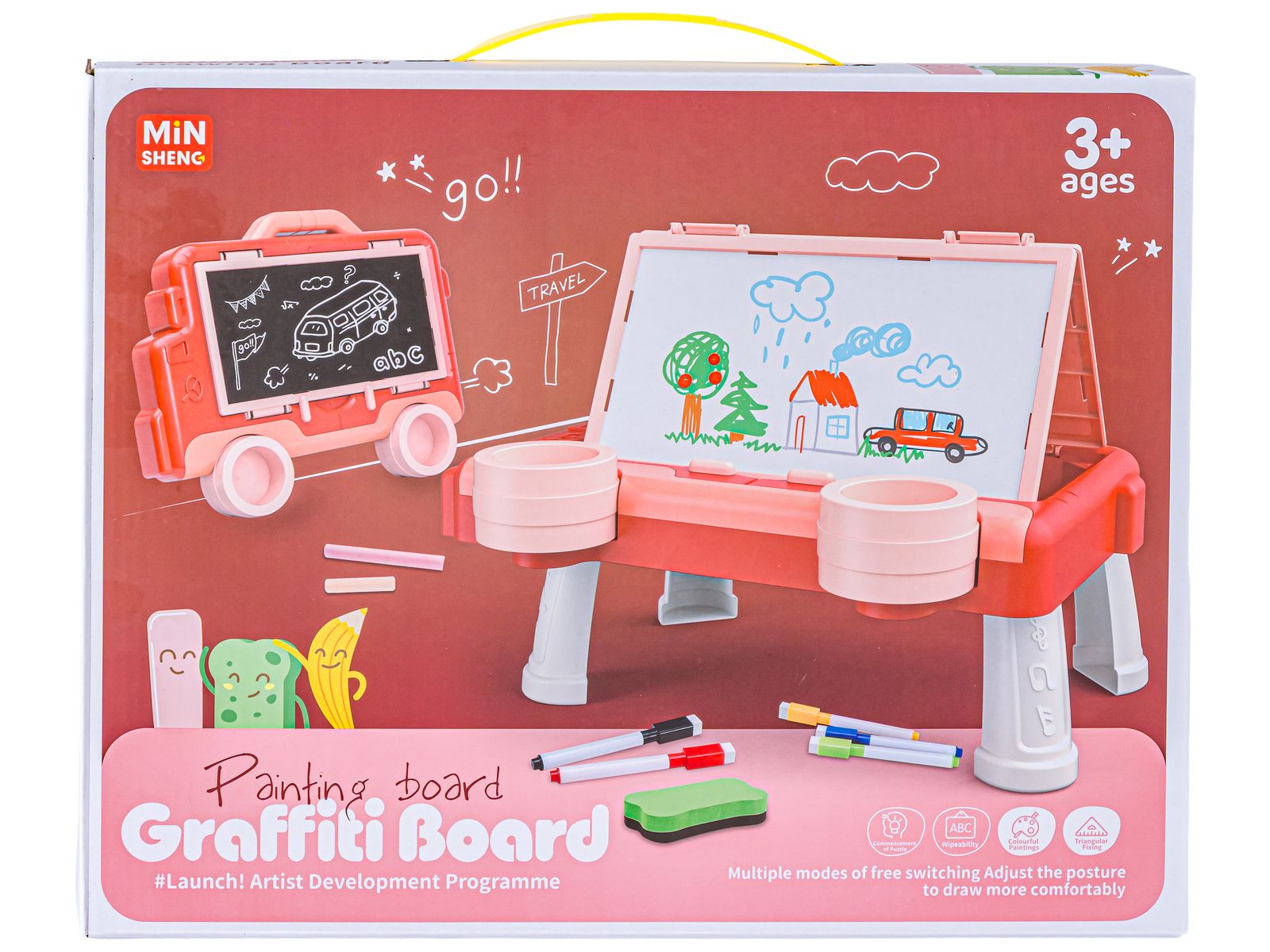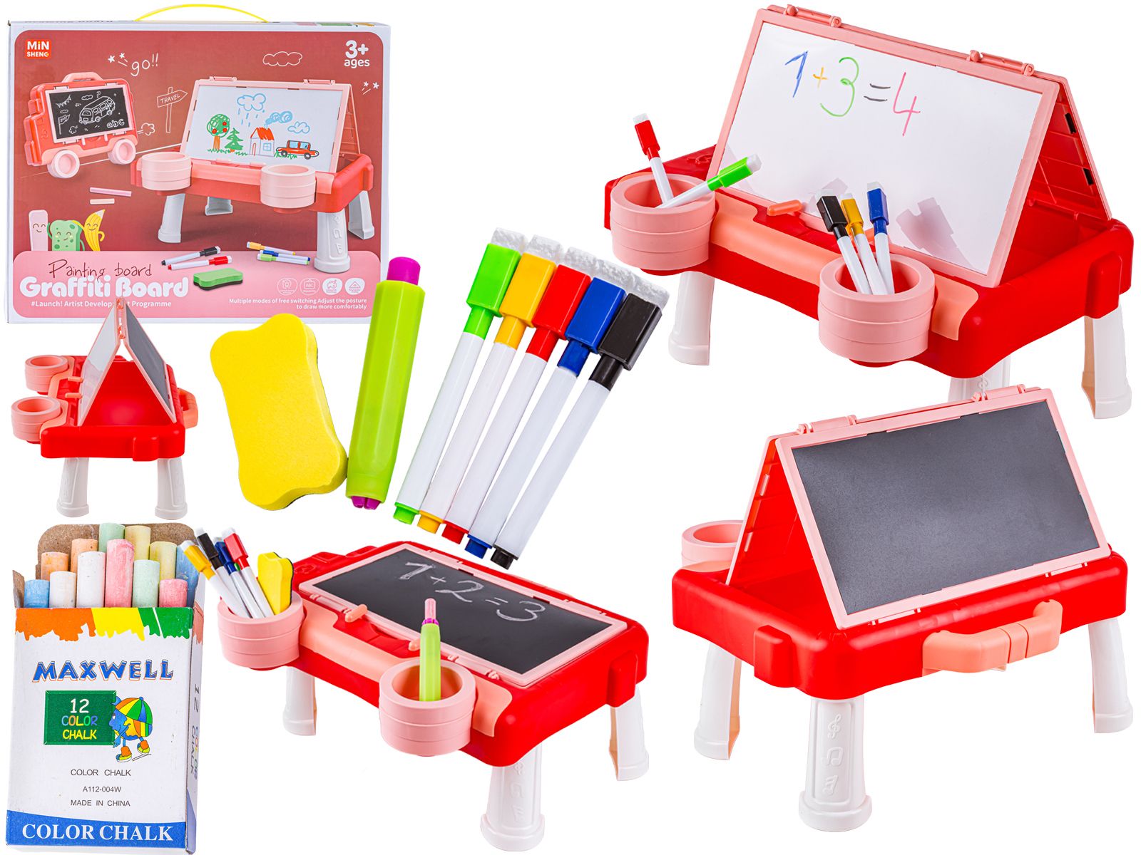 Wielofunkcyjna Dwustronna Tablica 2w1 Do Rysowania Malowania Zmazywalna Kredowa Stolik Różowa