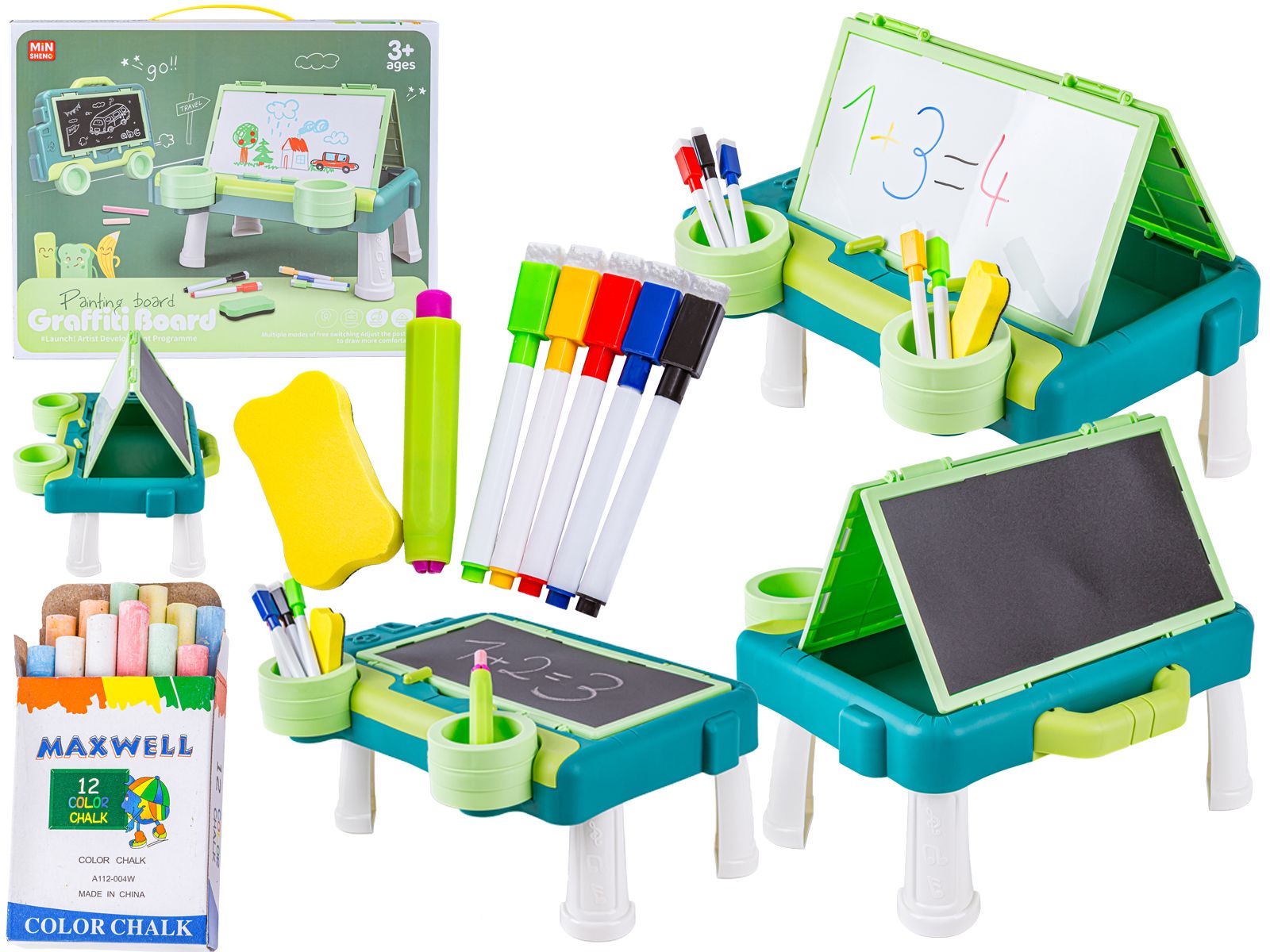 Wielofunkcyjna Dwustronna Tablica 2w1 Do Rysowania Malowania Zmazywalna Kredowa Stolik ZIELONA
