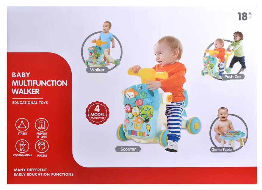 Nasz produkt to pchacz, jeździk, jeździk z asekuracją oraz stolik edukacyjny w jednym. Zabawa tą zabawką naprawdę szybko się nie znudzi :)