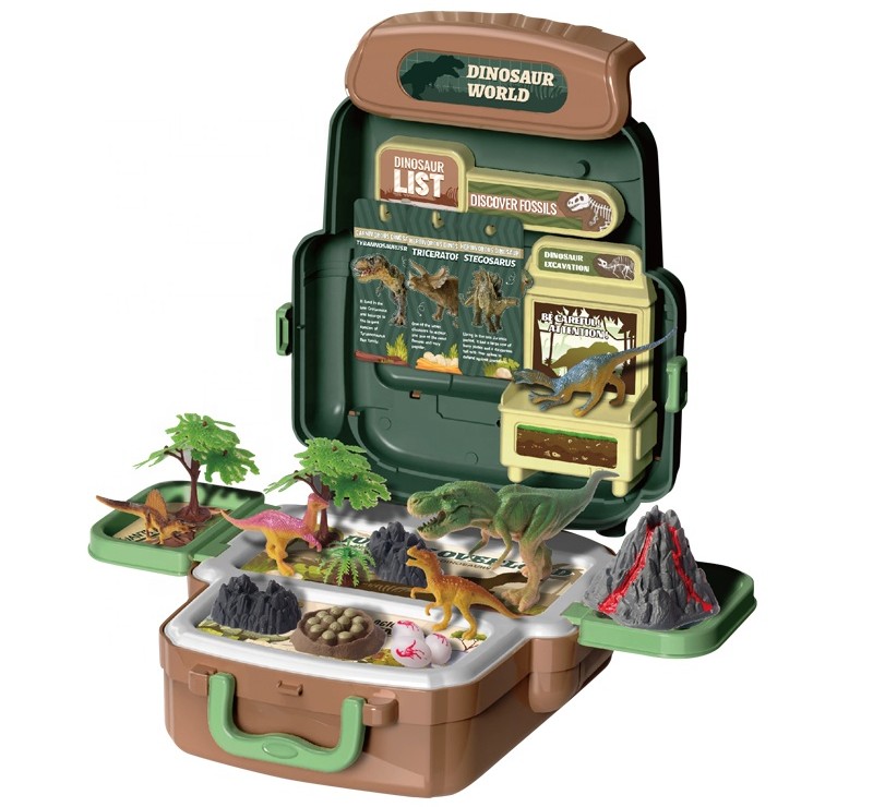Duży Zestaw Dinozaurów W Plecaku Figurki W Walizce DINOZAURY Wulkan Akcesoria 30 El.