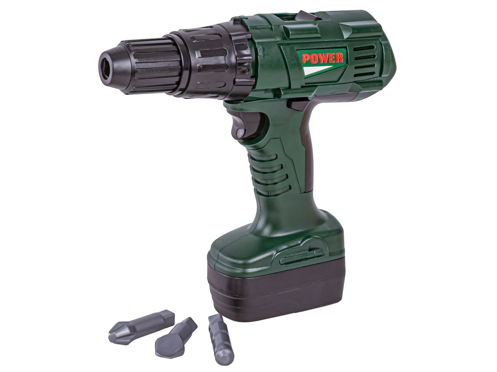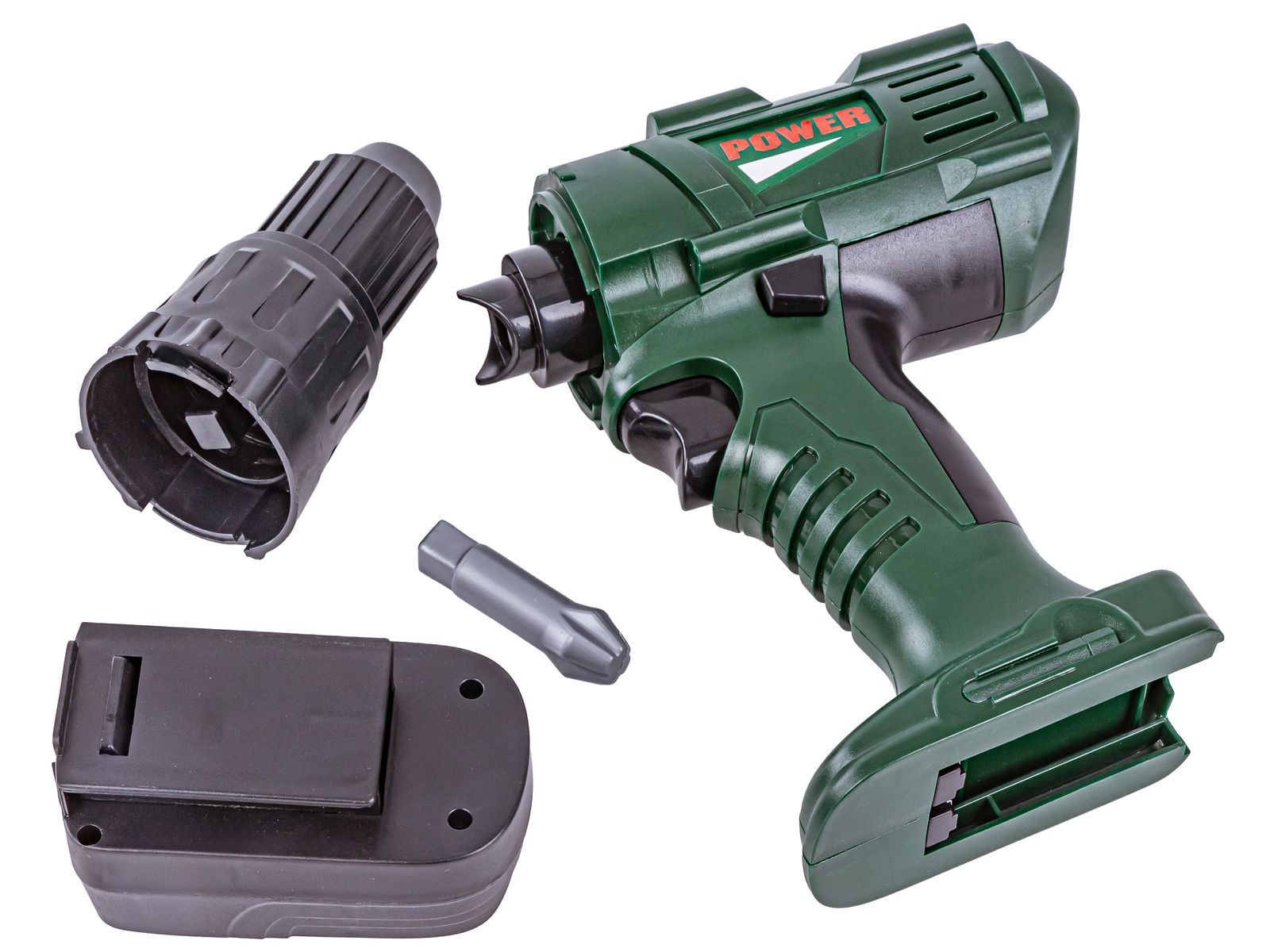 Narzędzia jak prawdziweWkrętarka posiada lewe i prawe obroty, przełącznik prędkości obrotów (atrapa) oraz wysuwany dolny akumulator - jak w prawdziwym sprzęcie dla dorosłych. | ![]() |