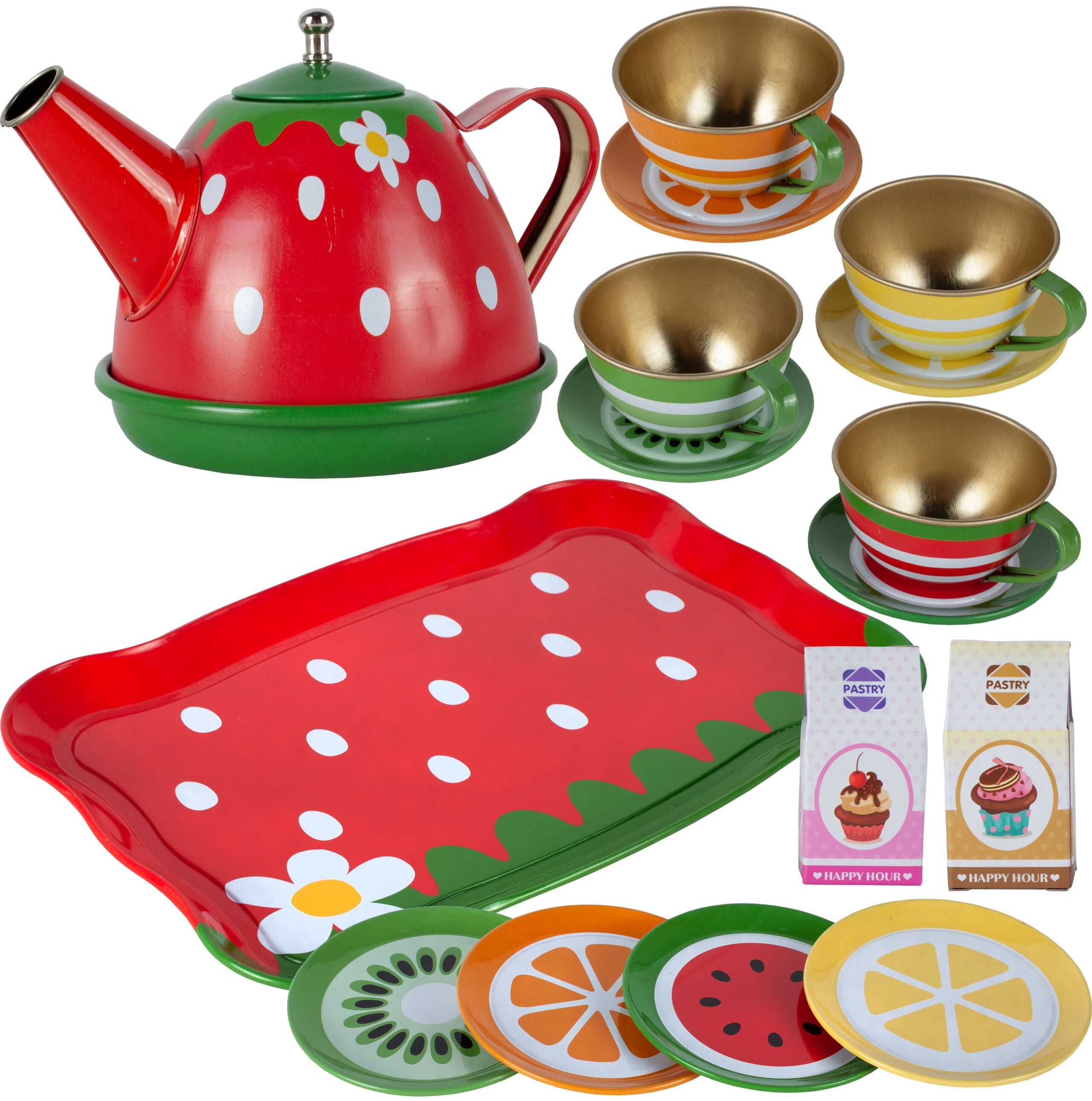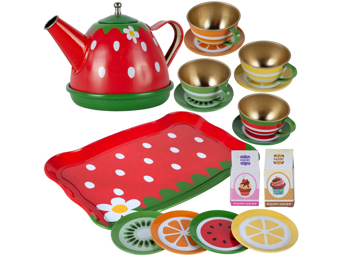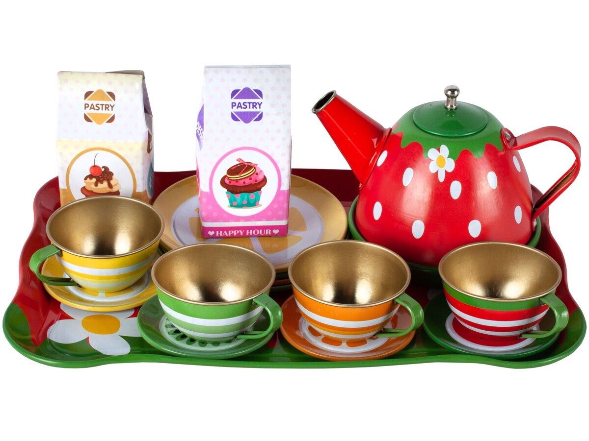 Solidne wykonanieTacka, filiżanki, talerzyki oraz czajniczek są metalowe, dzięki czemu są o wiele trwalsze od plastiku i na pewno długo posłużą. | ![]() |