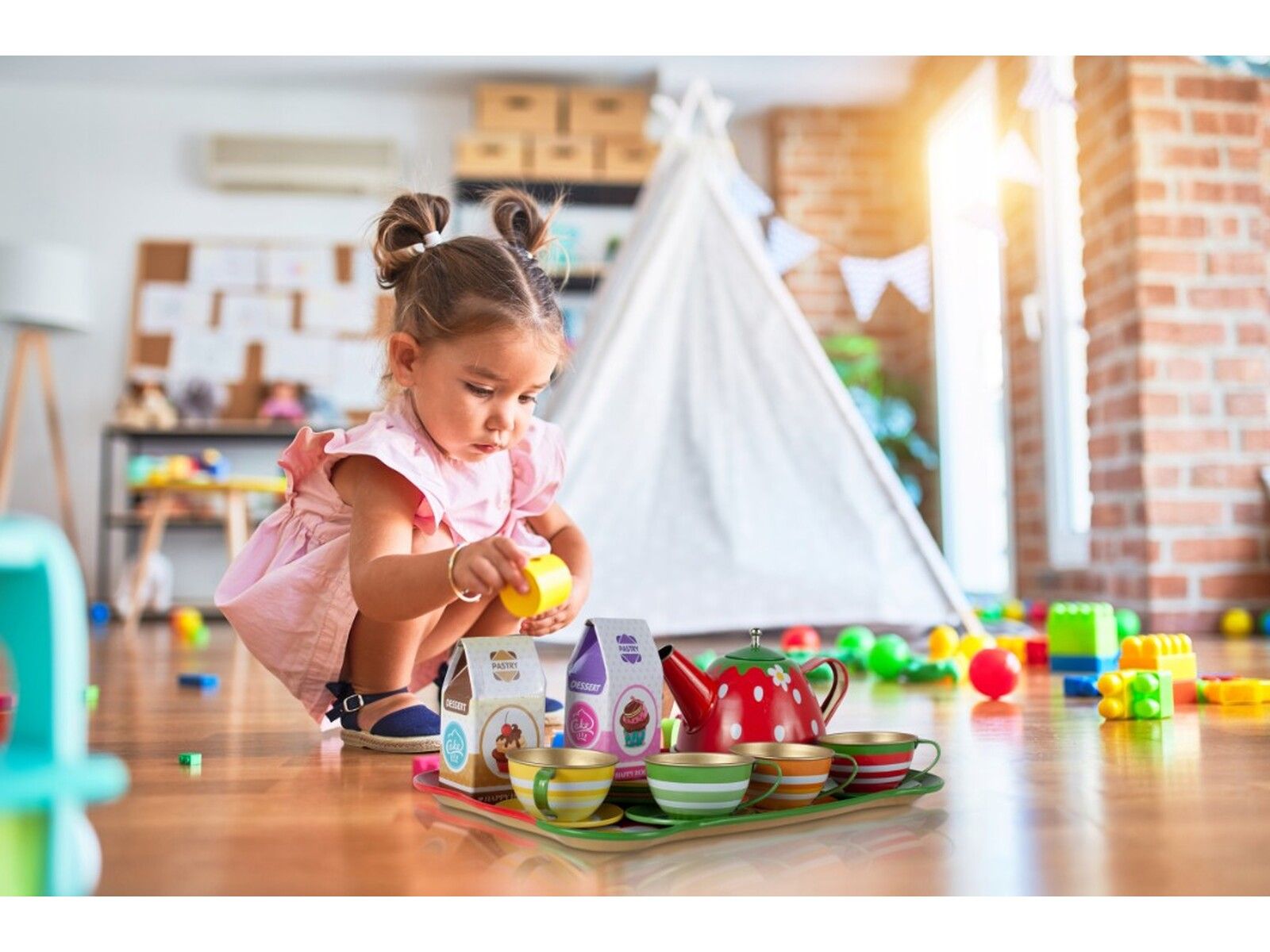 Zabawka cechuje się jakością i dbałością o detale – świetnie odwzorowuje zabawę w prawdziwą kawiarnię. Do dyspozycji mamy czajniczek, filiżanki ze spodkami, talerzyki, tackę i 2 kartoniki. Piękna, żywa kolorystyka przyciągają uwagę dzieci i sprawiają, że zabawa zajmuje je na wiele, wiele godzin.