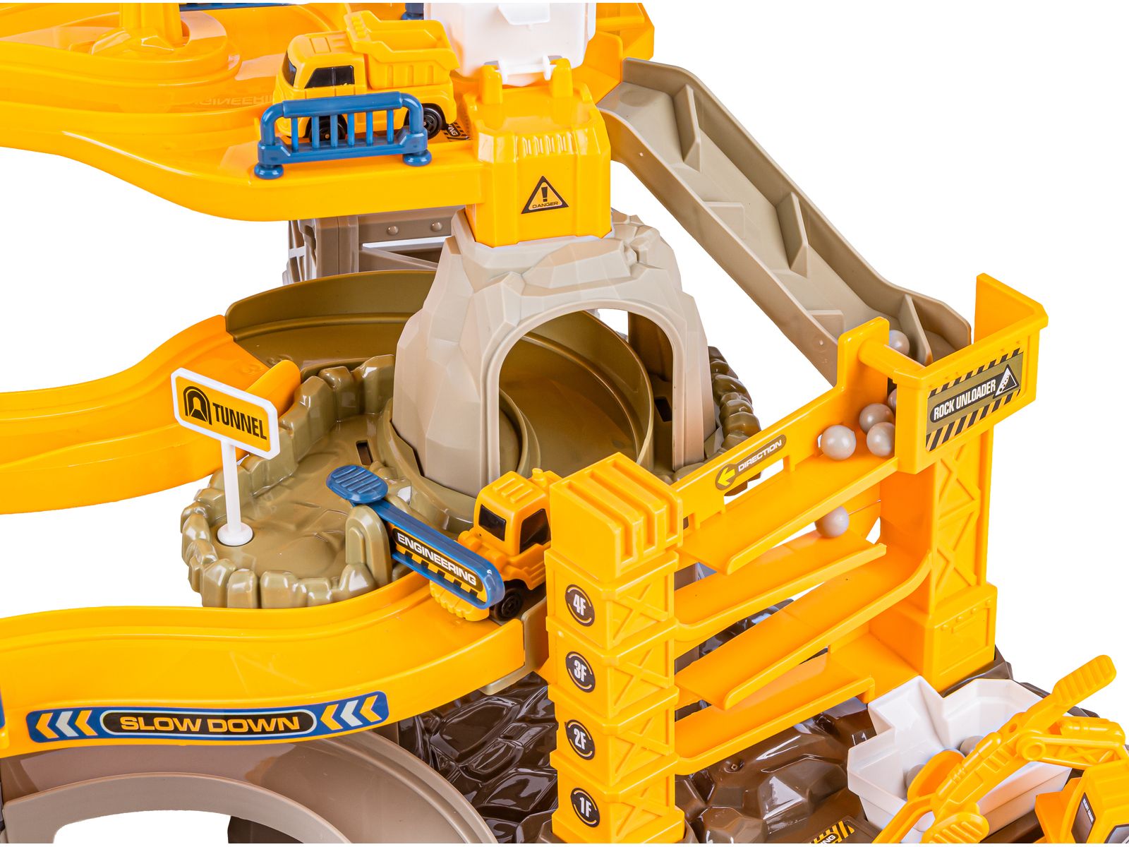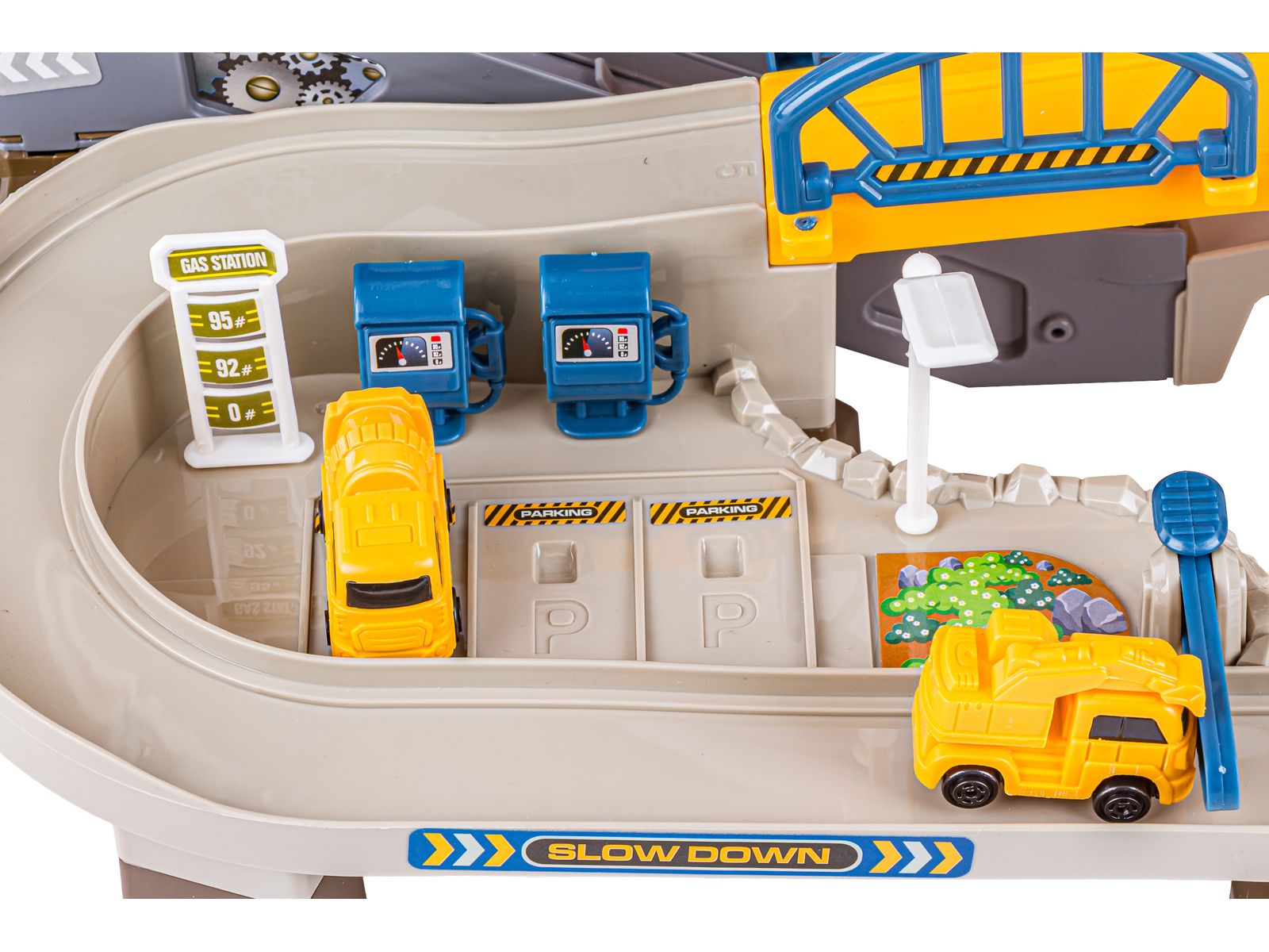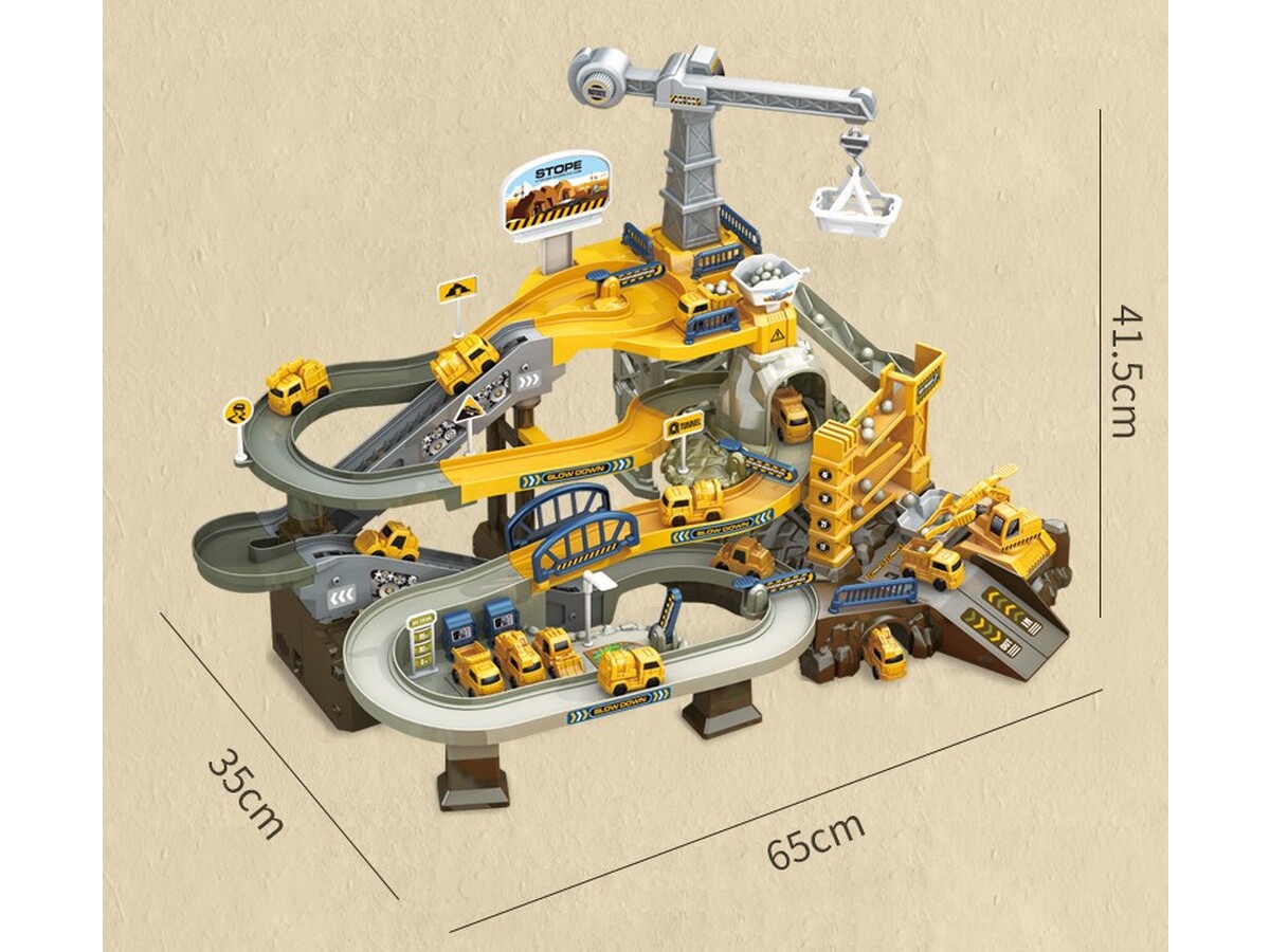 Zjazd samochodowy Tor Kulkowy PLAC BUDOWY Garaż Parking Zjeżdżalnia Dźwig
