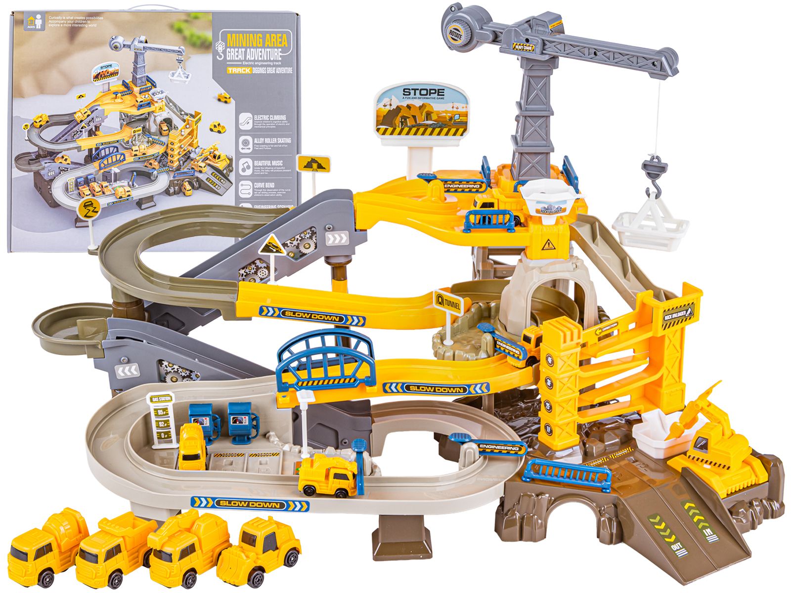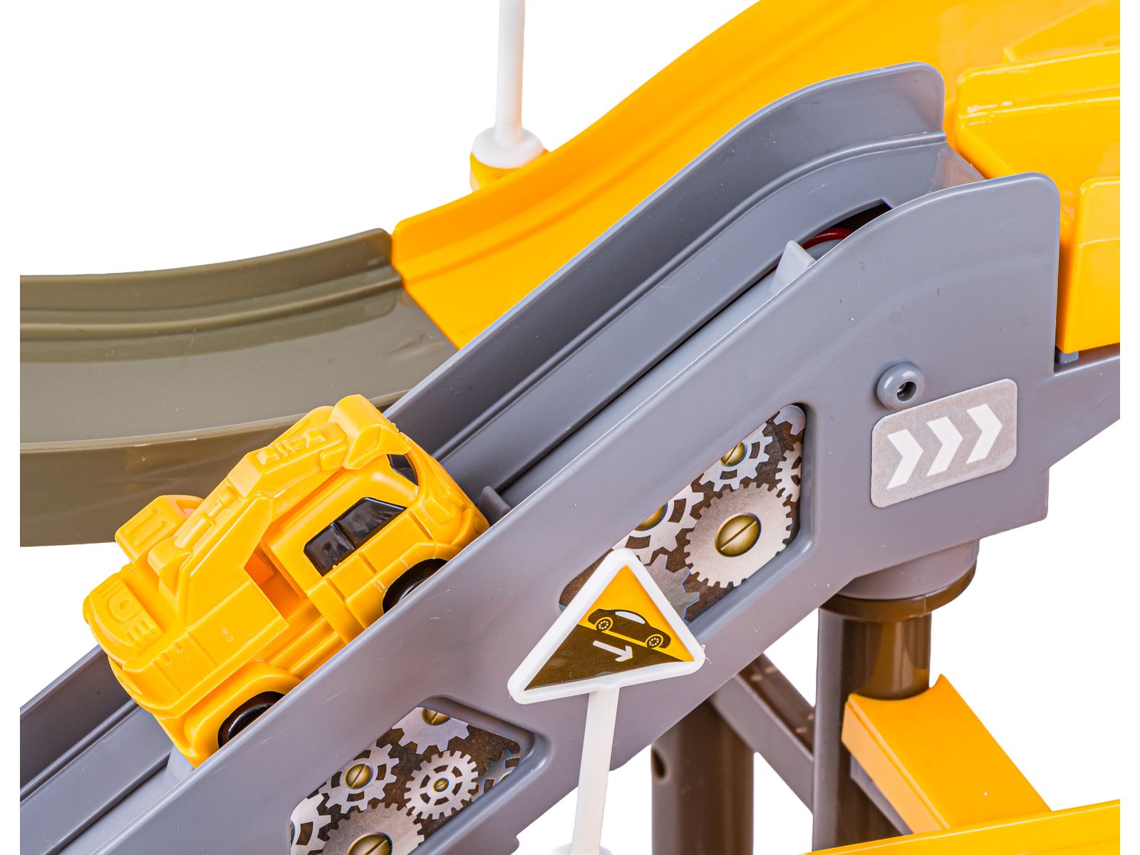 Przekonaj się jak wiele radości da Twojemu maluchowi zabawa tym niezwykłym zestawem. To prawdziwy plac budowy z zjeżdżalnią, elektrycznym podjazdem i mnóstwem dodatkowych atrakcji, które z pewnością przykują uwagę i zachęcą do zabawy.